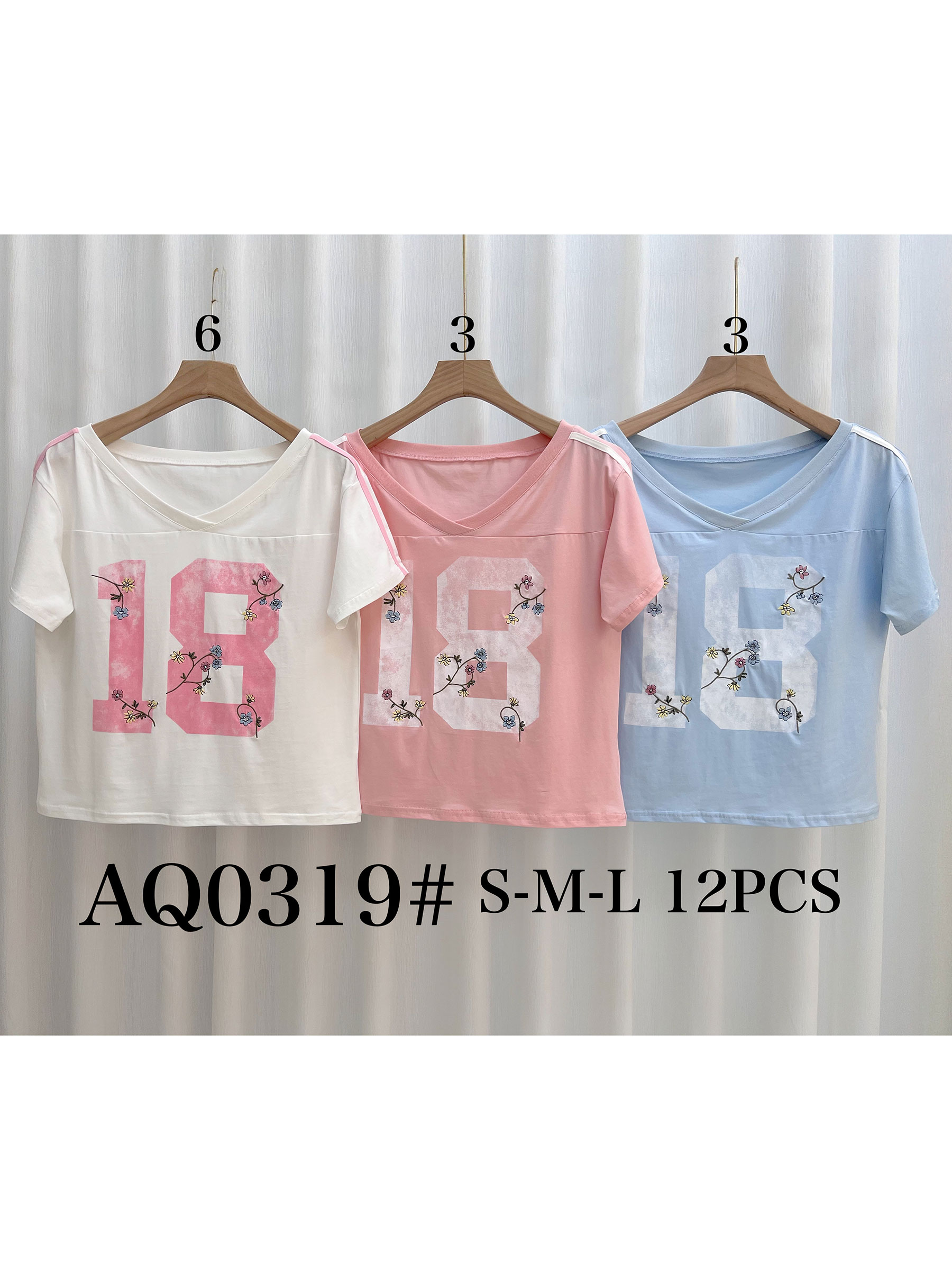 T-shirt corta. Scollo a V. Stampa "18" effetto vintage con dettaglio floreale. Spalline sportive a contrasto. Maniche corte. Tessuto elasticizzato.