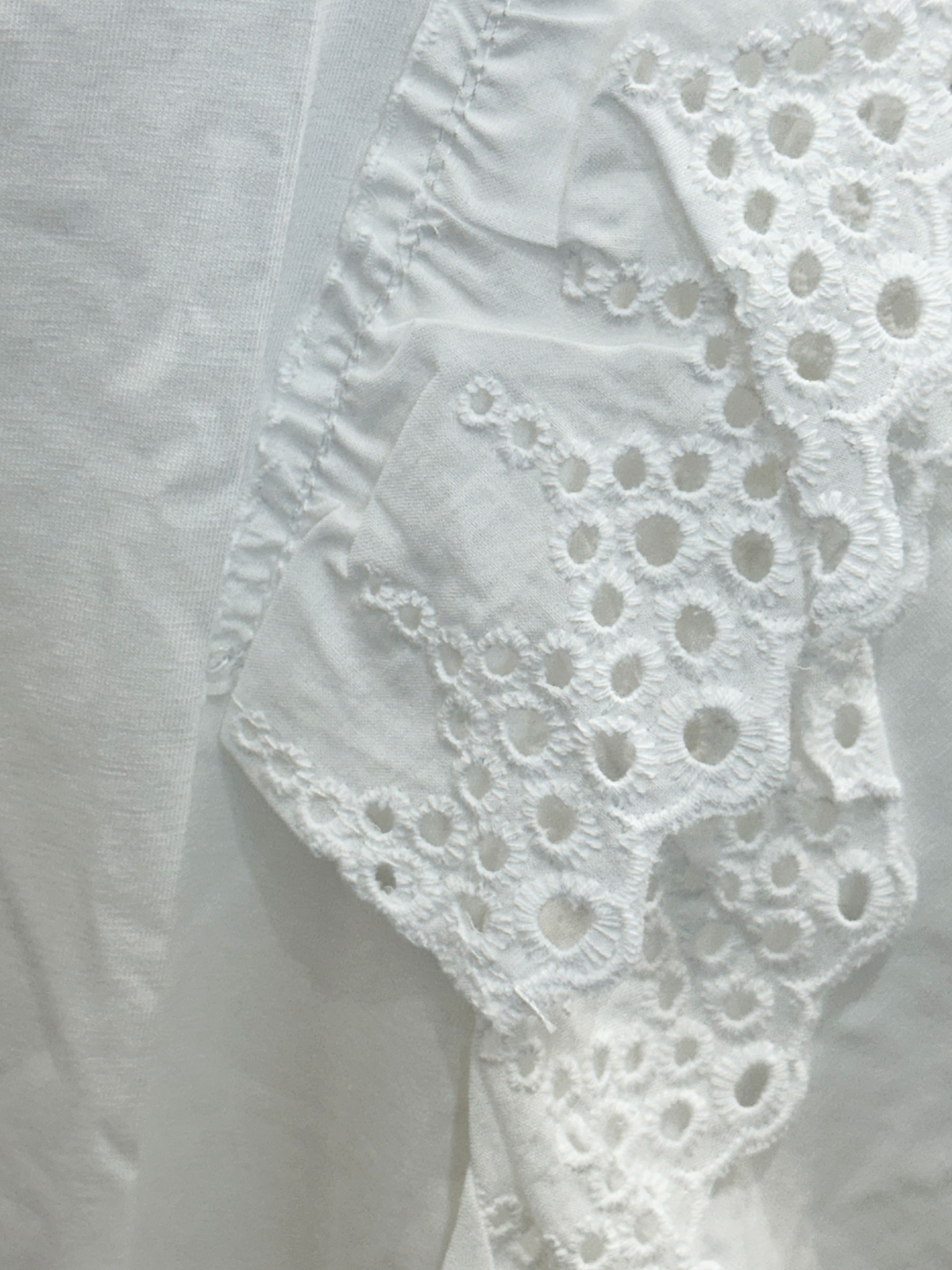 T-shirt con volant in pizzo sulle spalle