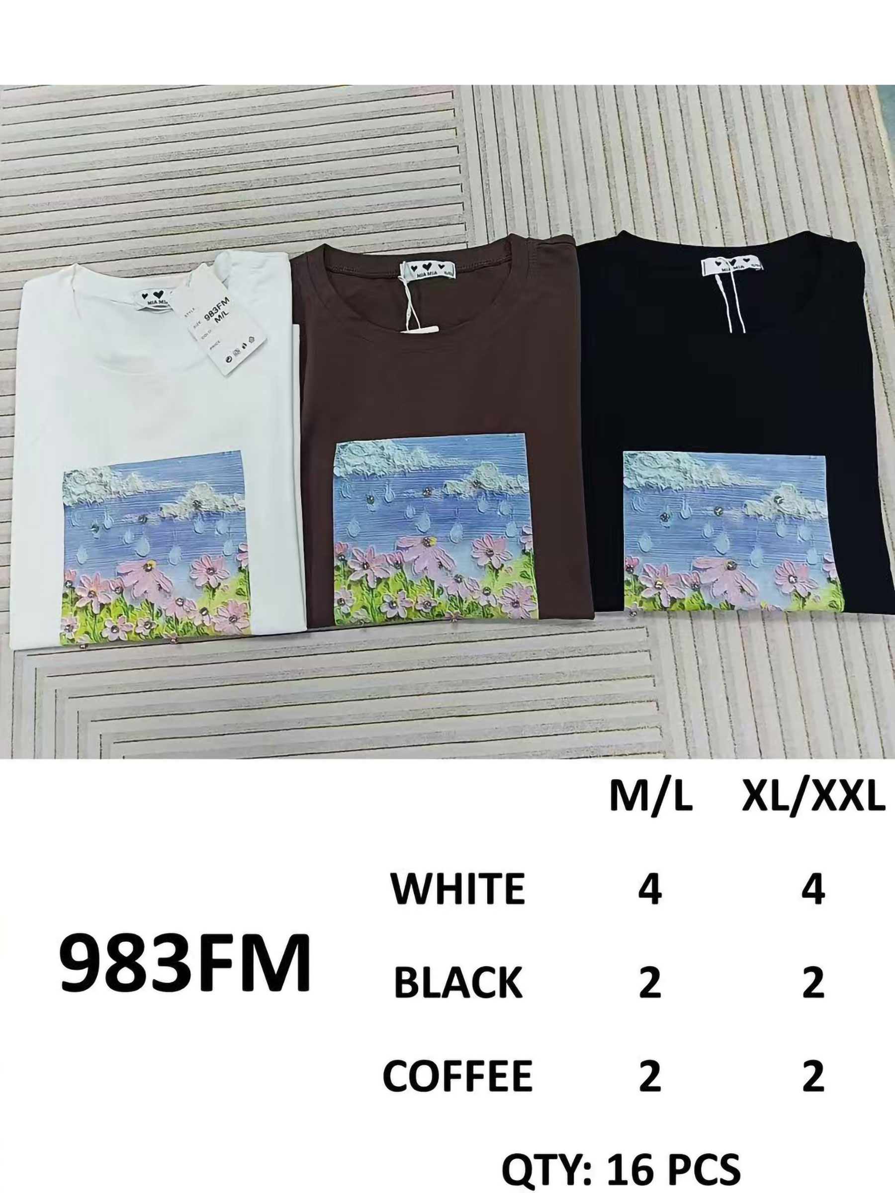 T-shirt con stampa floreale del paesaggio