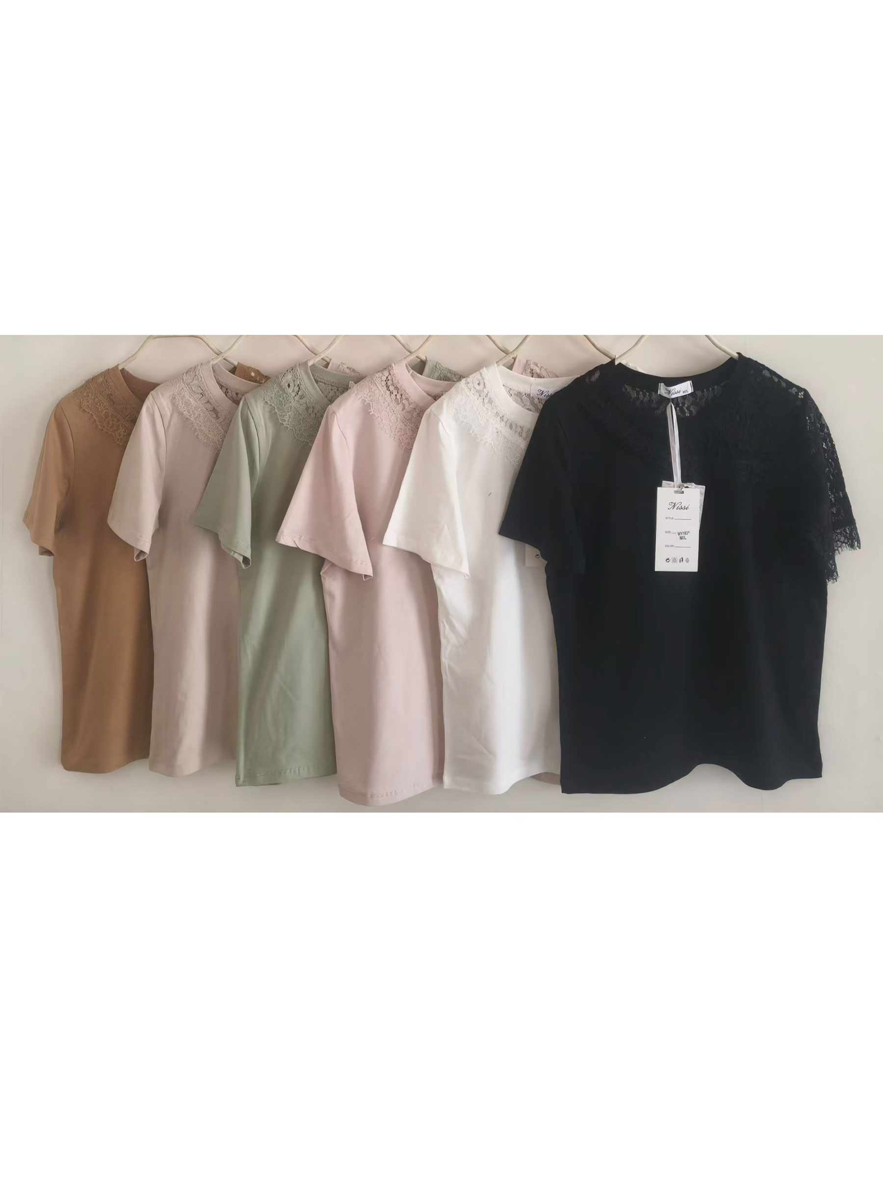 T-shirt con carré e manica in pizzo