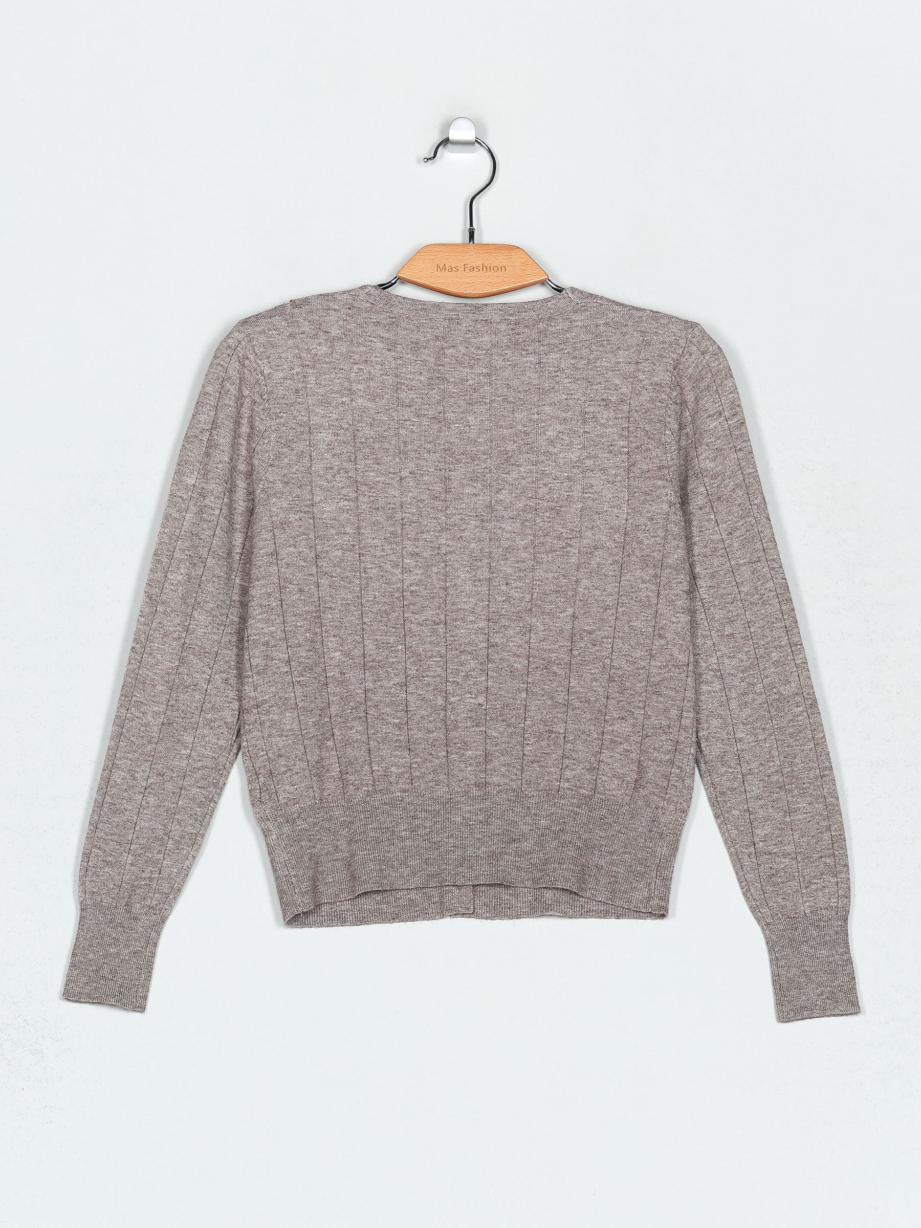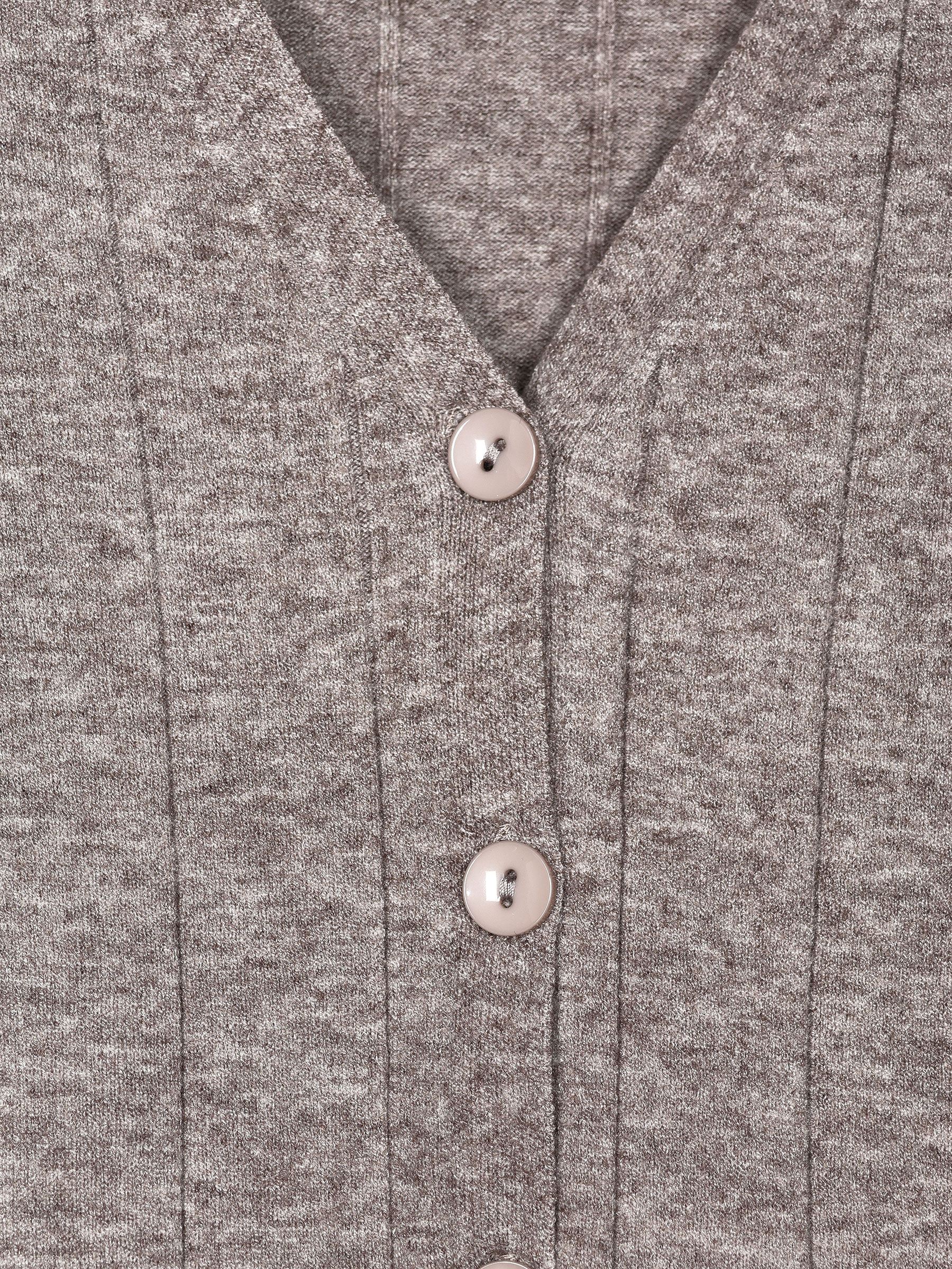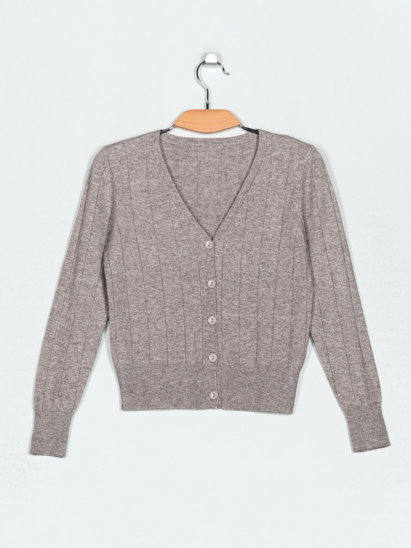 Giacca cropped a coste. Maglia fine. Collo a V. Finiture a coste. Chiusura con bottoni. Manica lunga.