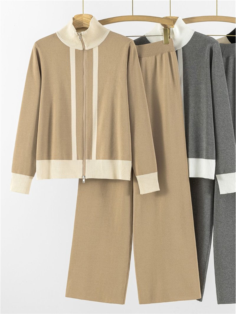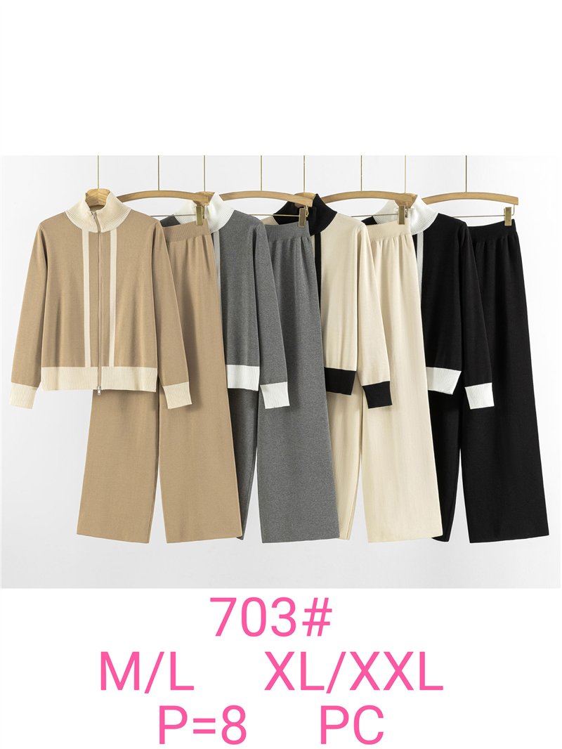 Dettagli dell'abito in maglia con bordi a contrasto + pantaloni FA-703