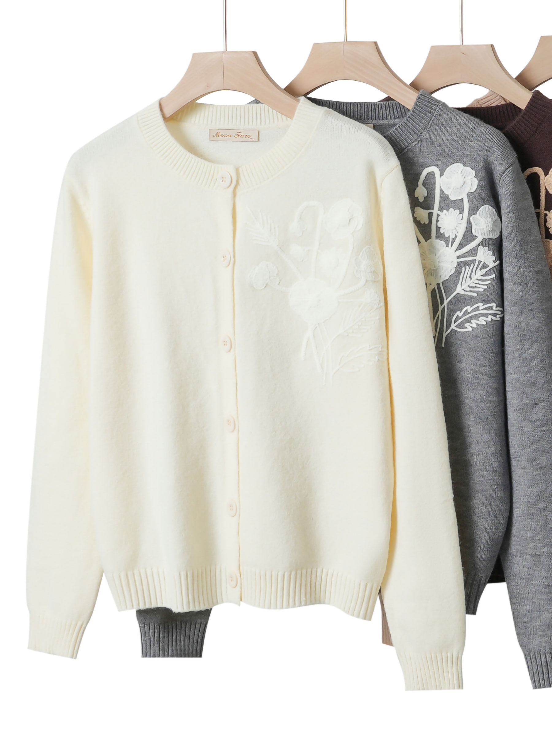 Dettagli della giacca in maglia ricamata floreale in rilievo FA-2705