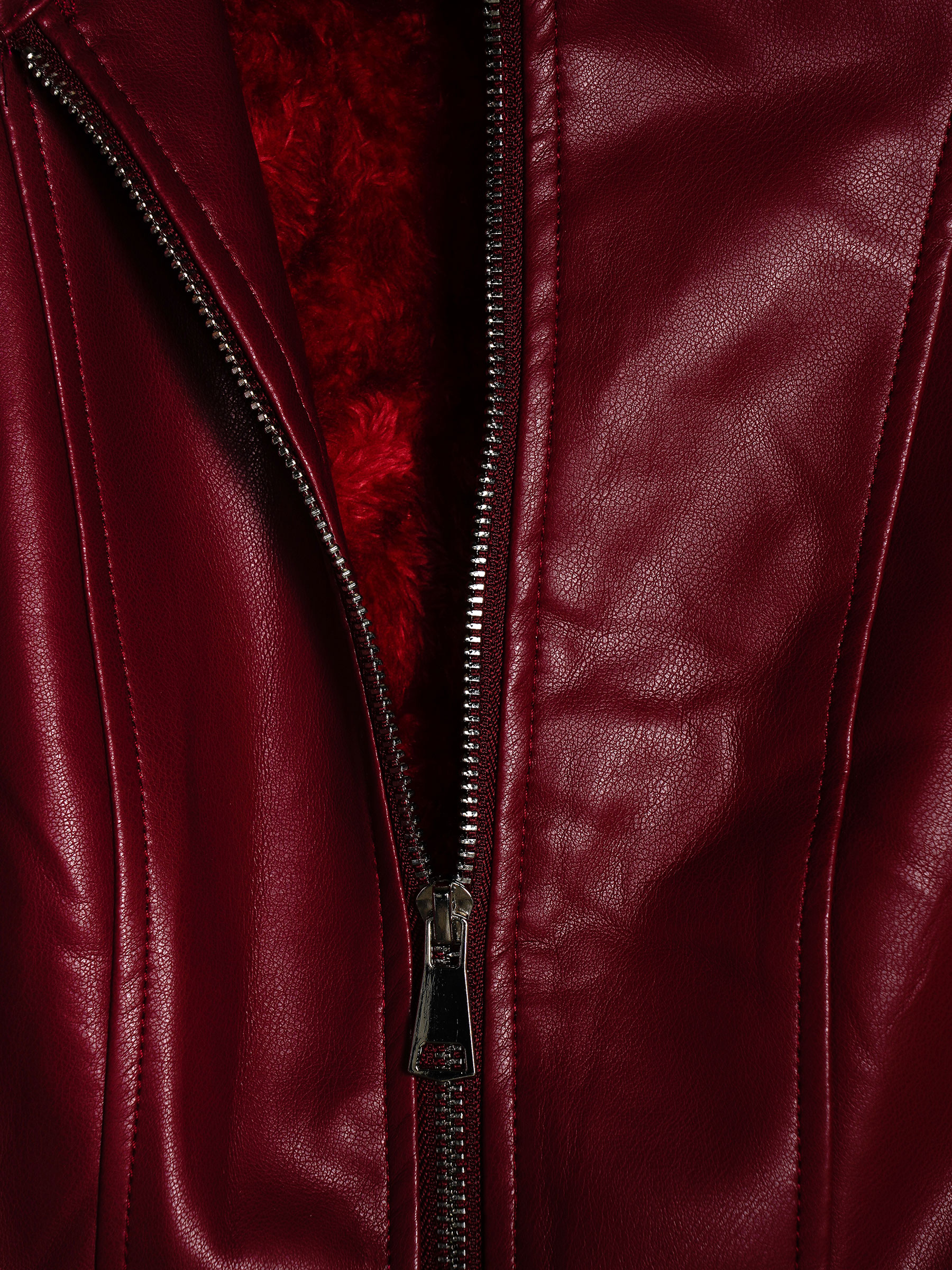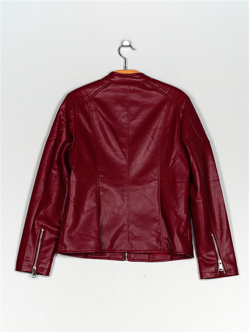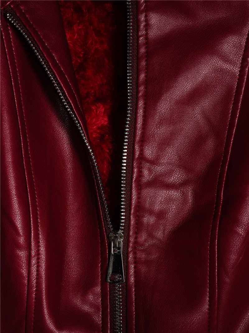 Dettagli della giacca effetto pelle pelo MF-16012-3-DEEP-RED-ROSE