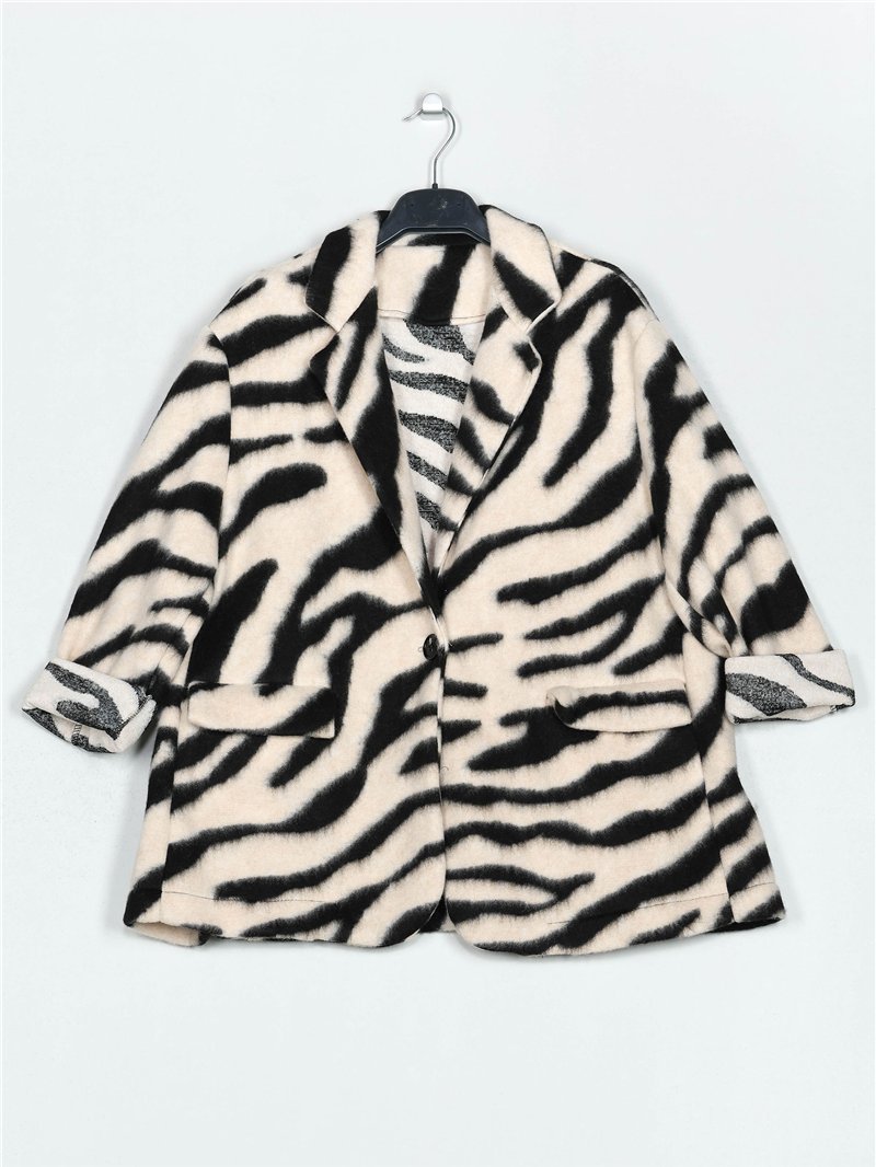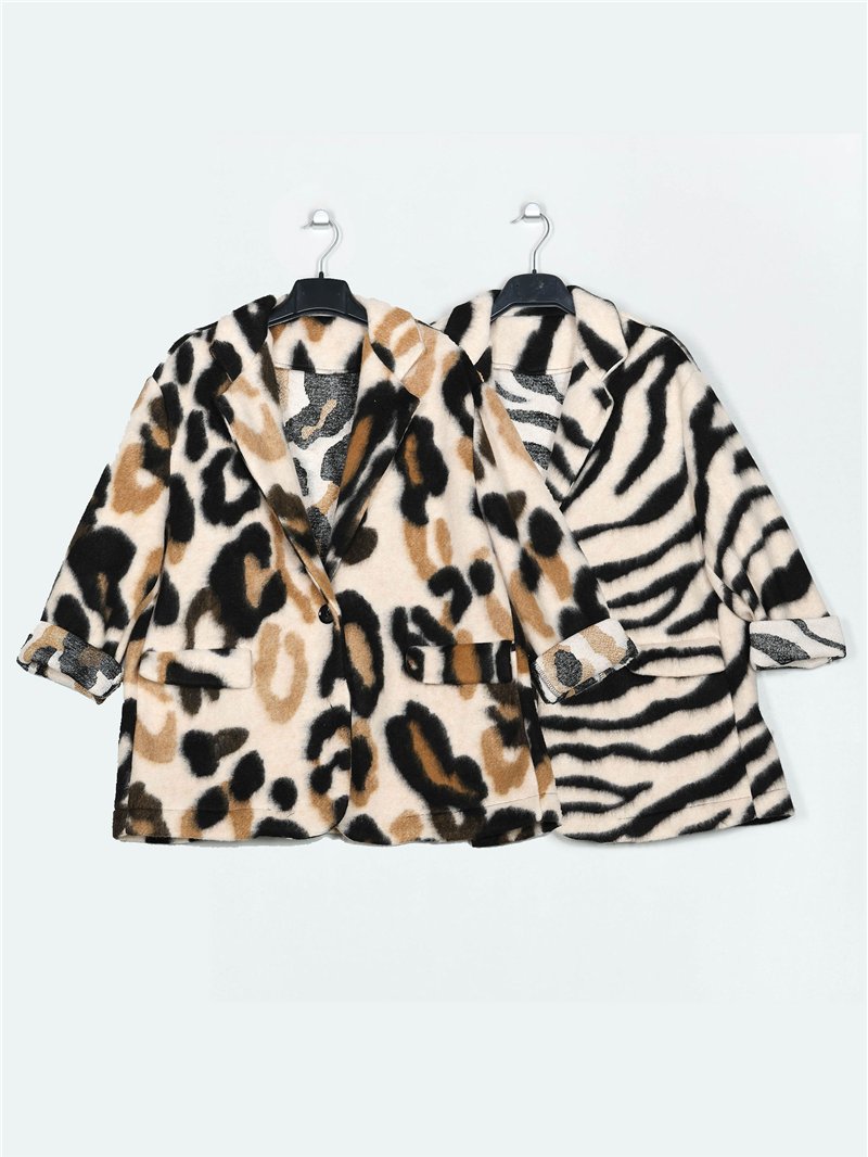 Dettagli del blazer maxi in pelo animalier T3004-13332