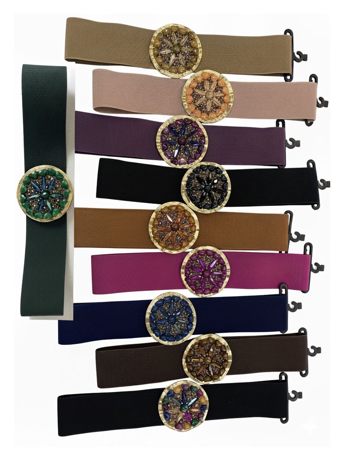 Cinturón elástico hebilla efecto piedras Cinturón elástico hebilla efecto piedras Cinturón elástico hebilla efecto piedras