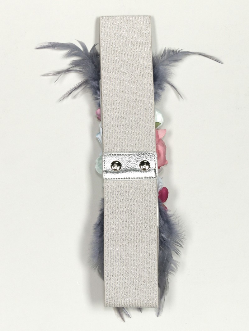 Cintura elastica fiori piume argento