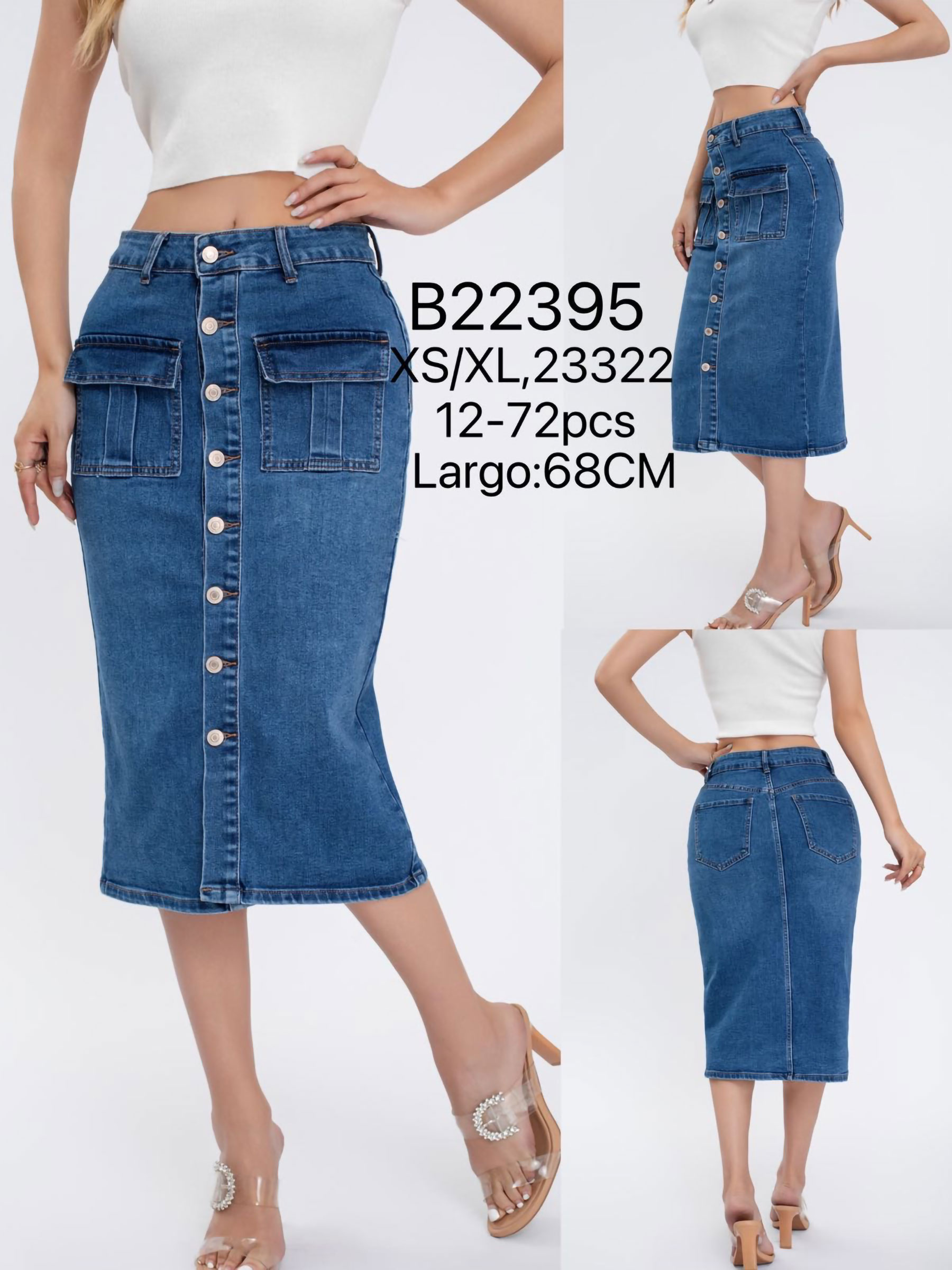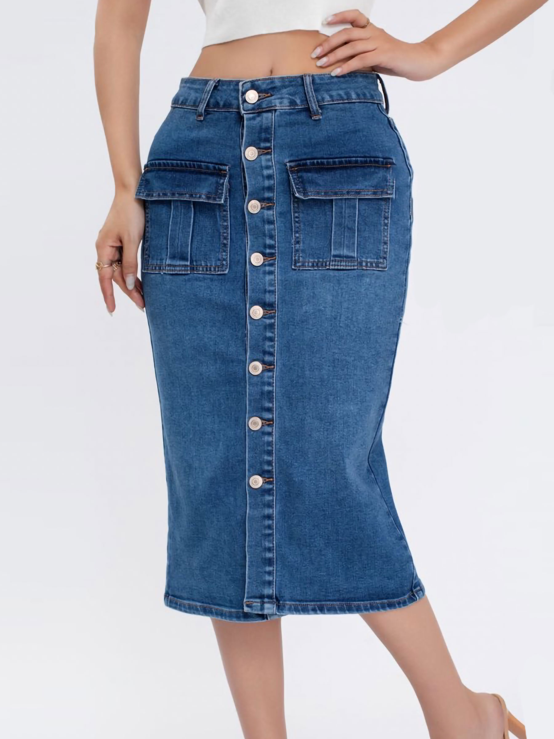 Dettagli della gonna midi in denim con tasche a patta MF-B22395