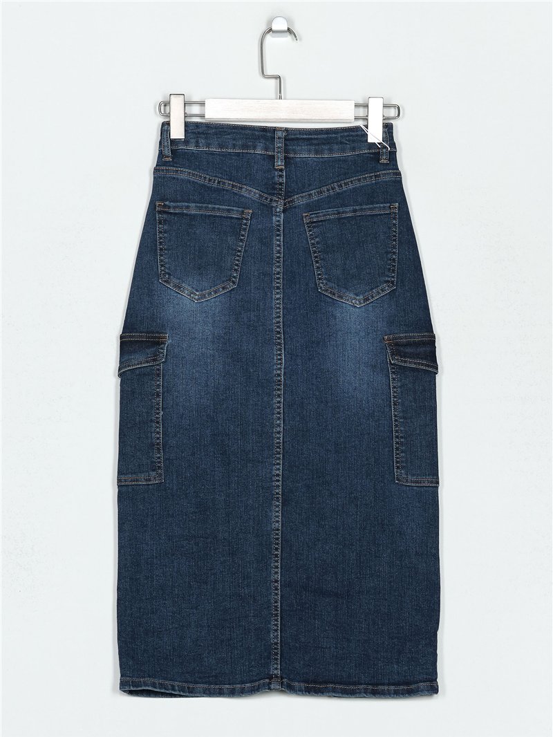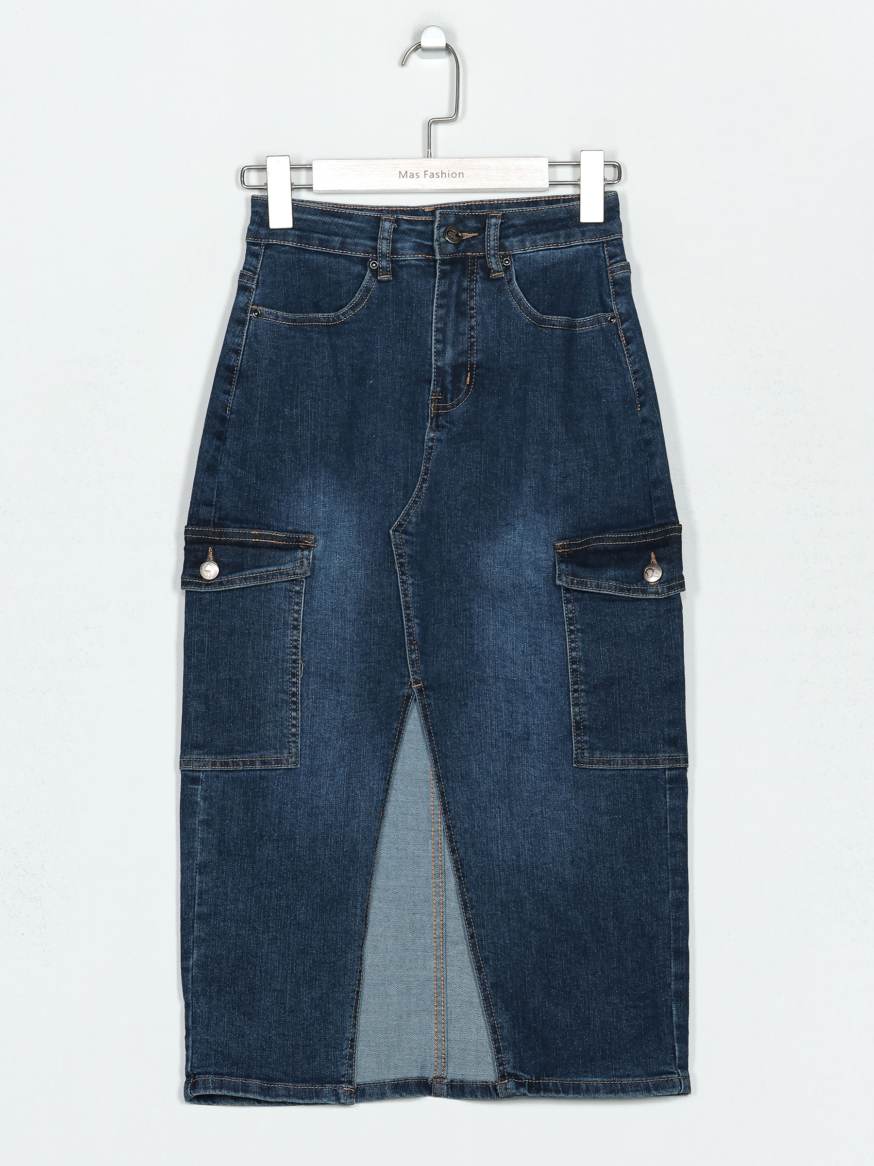 Dettagli della gonna midi in denim con tasche MF-B21985