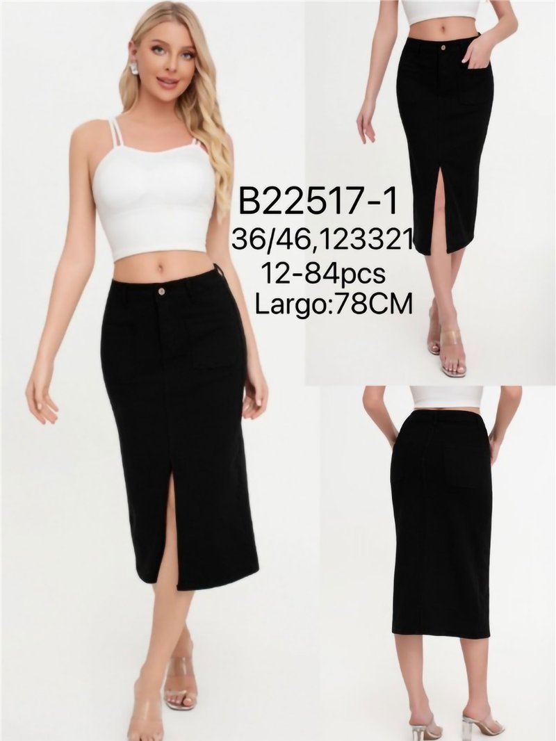 Dettagli della gonna midi in denim con apertura MF-B22517
