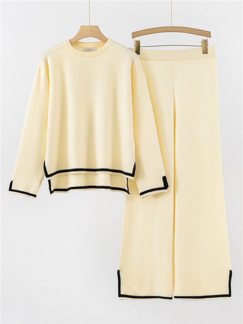 Set maglia ampia a contrasto collo rotondo + Pantaloni
