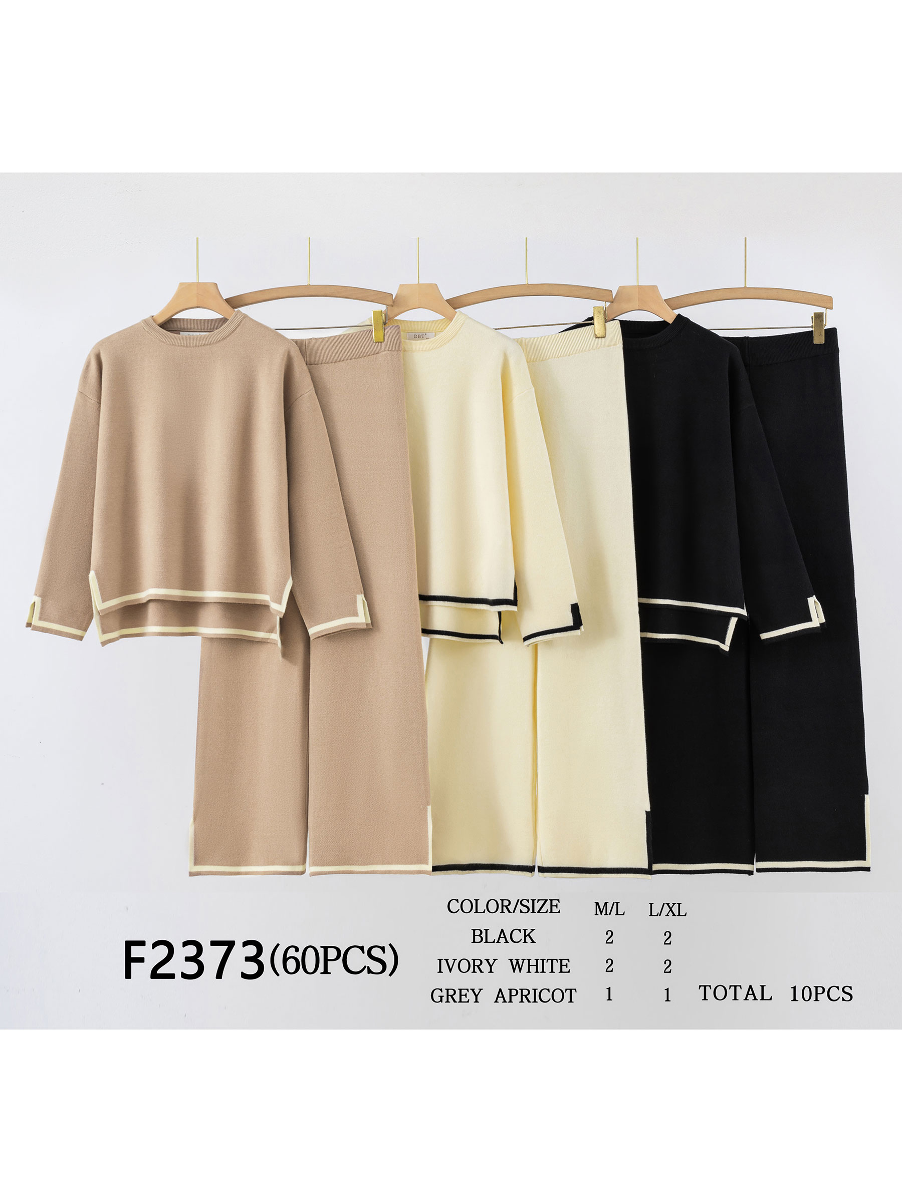 Dettagli dell' abito ampio a contrasto con scollo rotondo + pantaloni DB-F2373