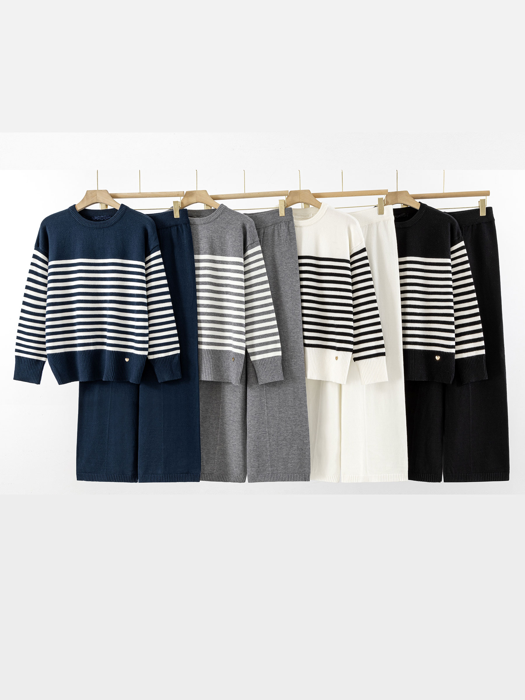 Dettagli dell' insieme maglia ampia a righe + pantaloni ZD-ZDB141