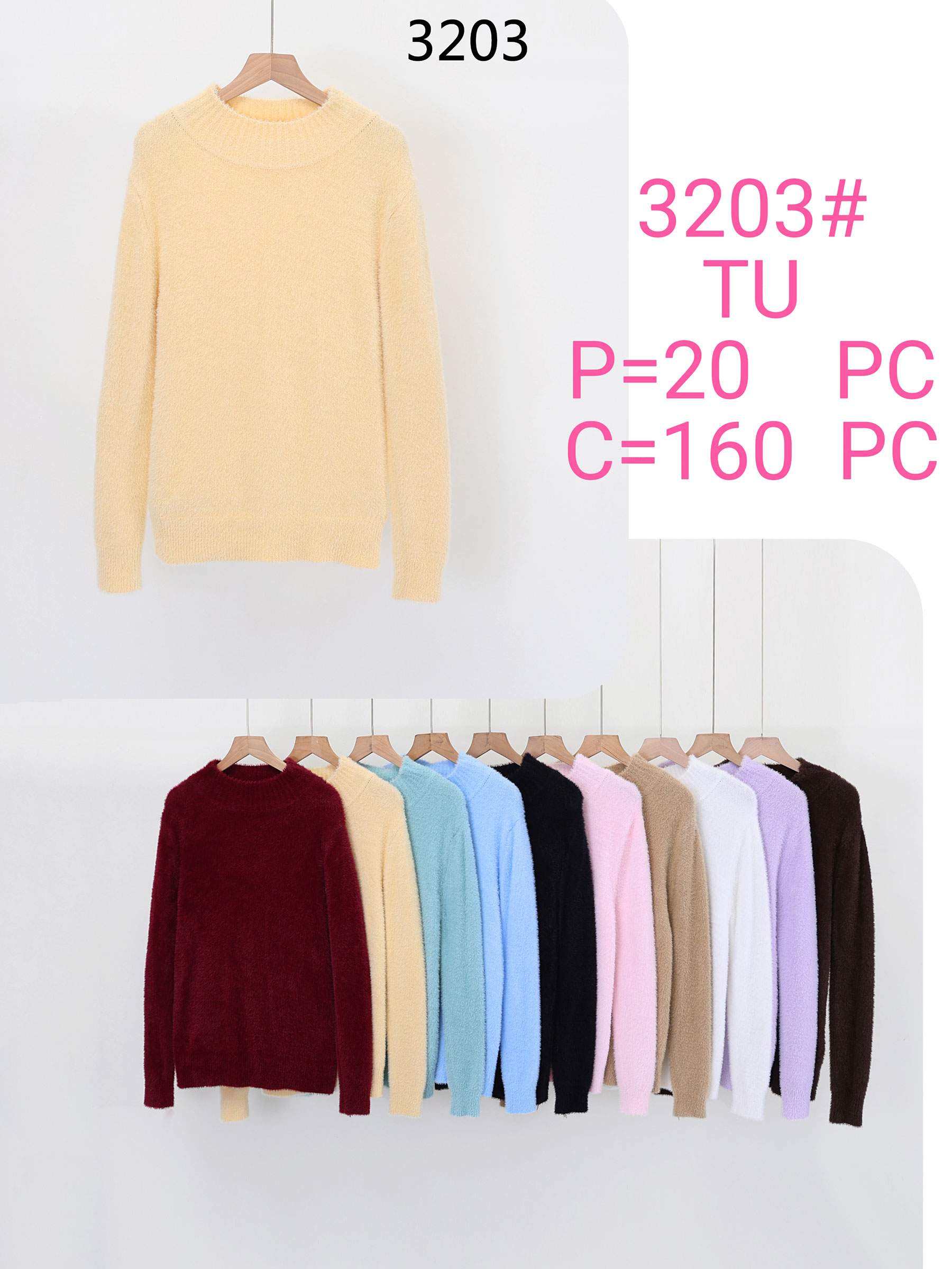 Dettagli del maglione peloso con collo alla coreana FA-3203