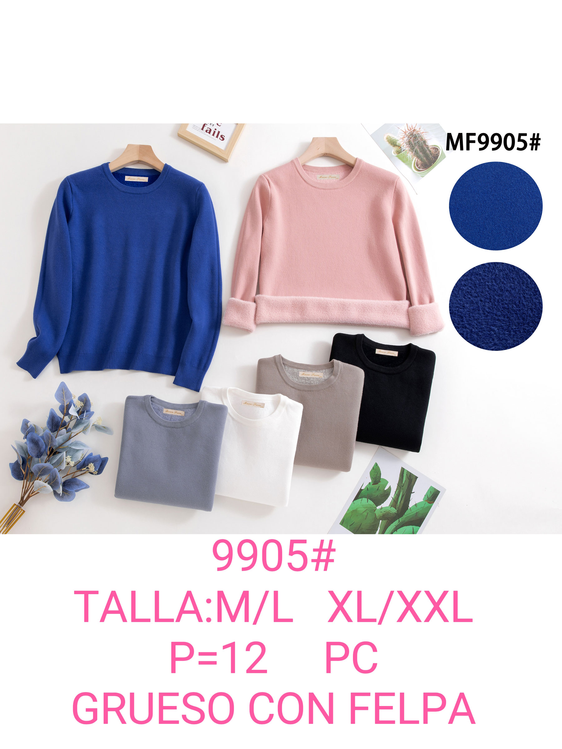 Dettagli della maglia termica con interno in pile e collo rotondo FA-9905