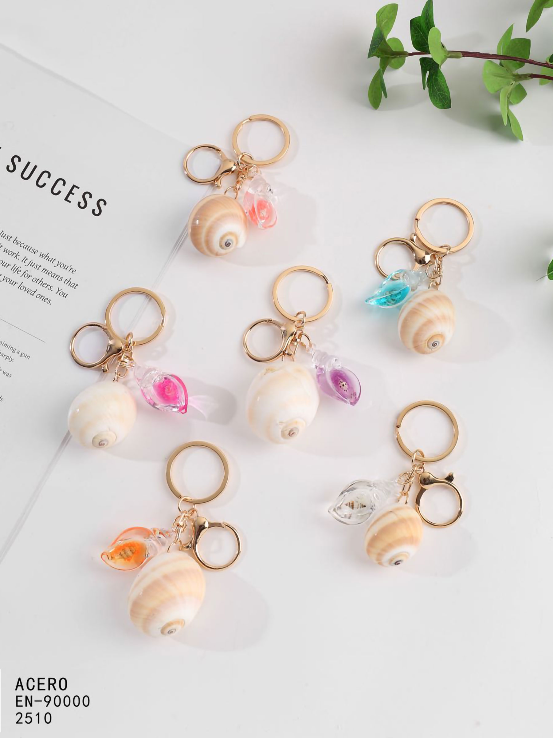 Portachiavi nautico con conchiglia effetto naturale e cristallo