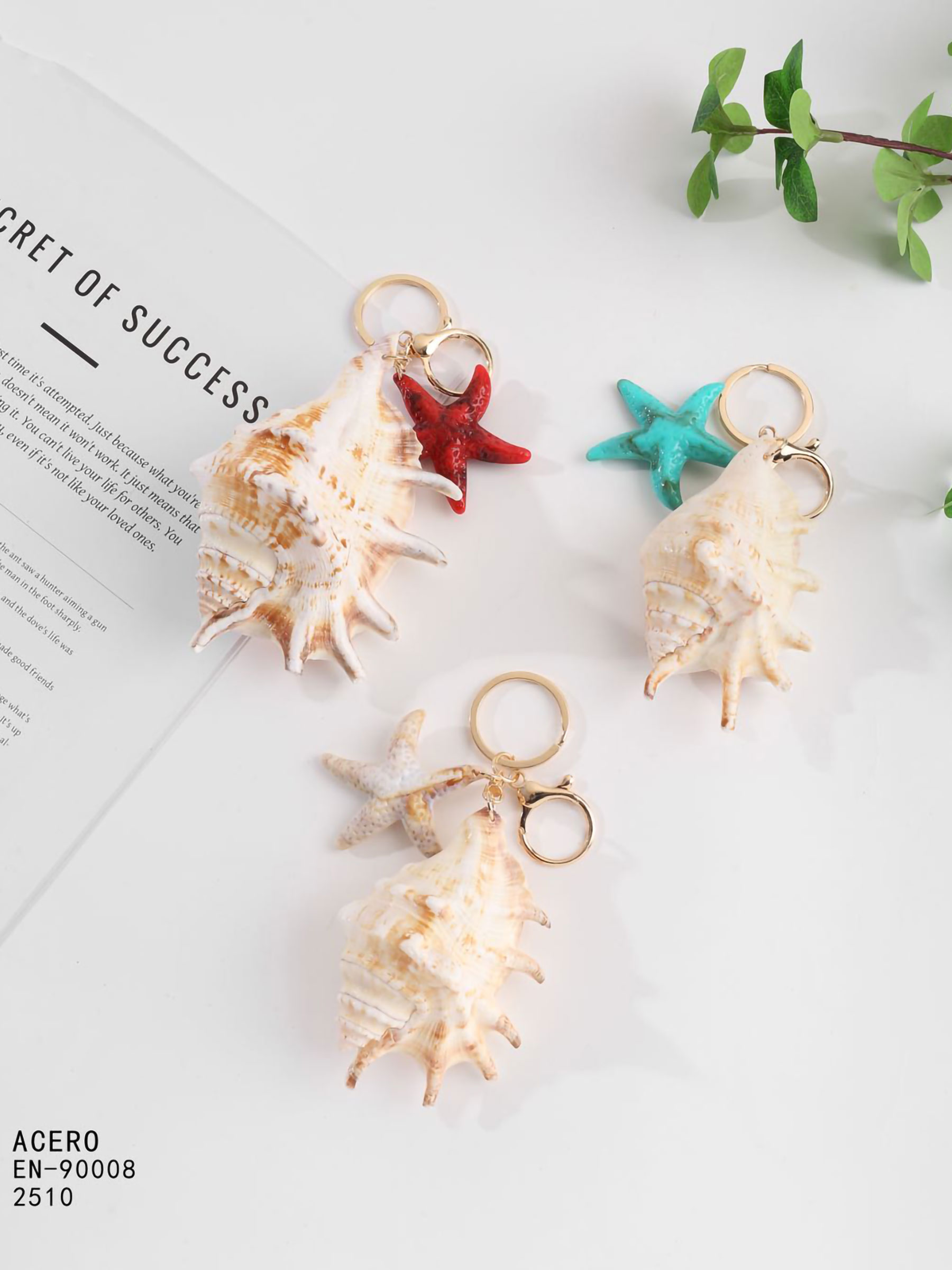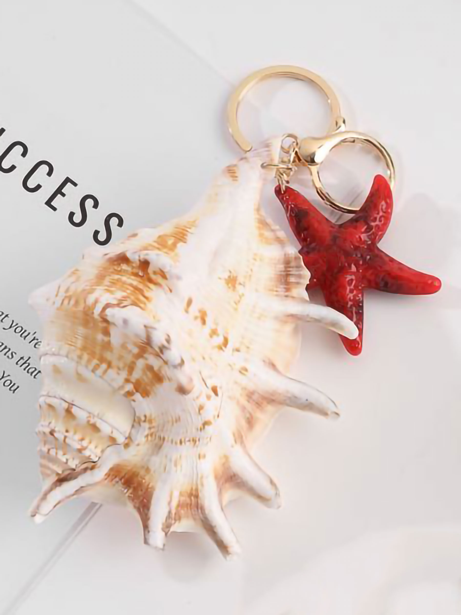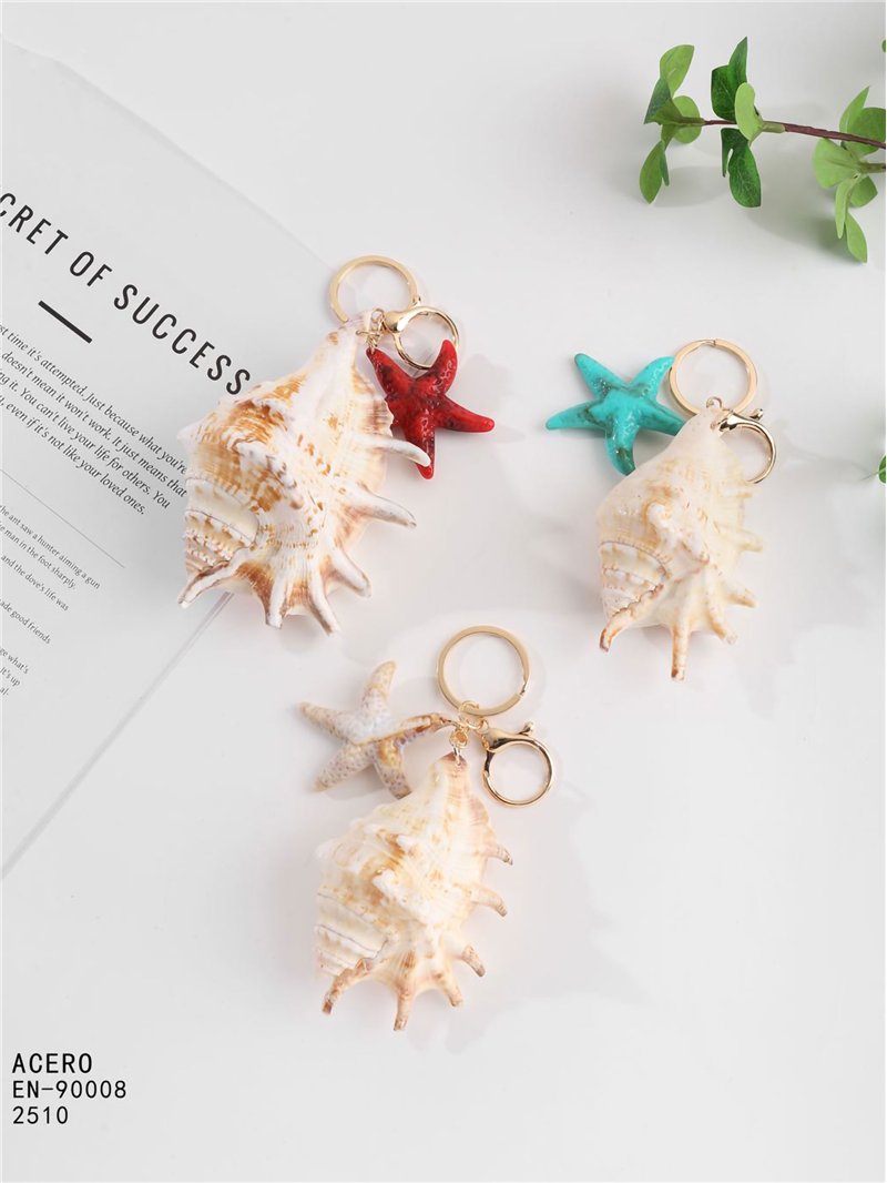 Portachiavi a forma di conchiglia grande con effetto naturale e stella marina.