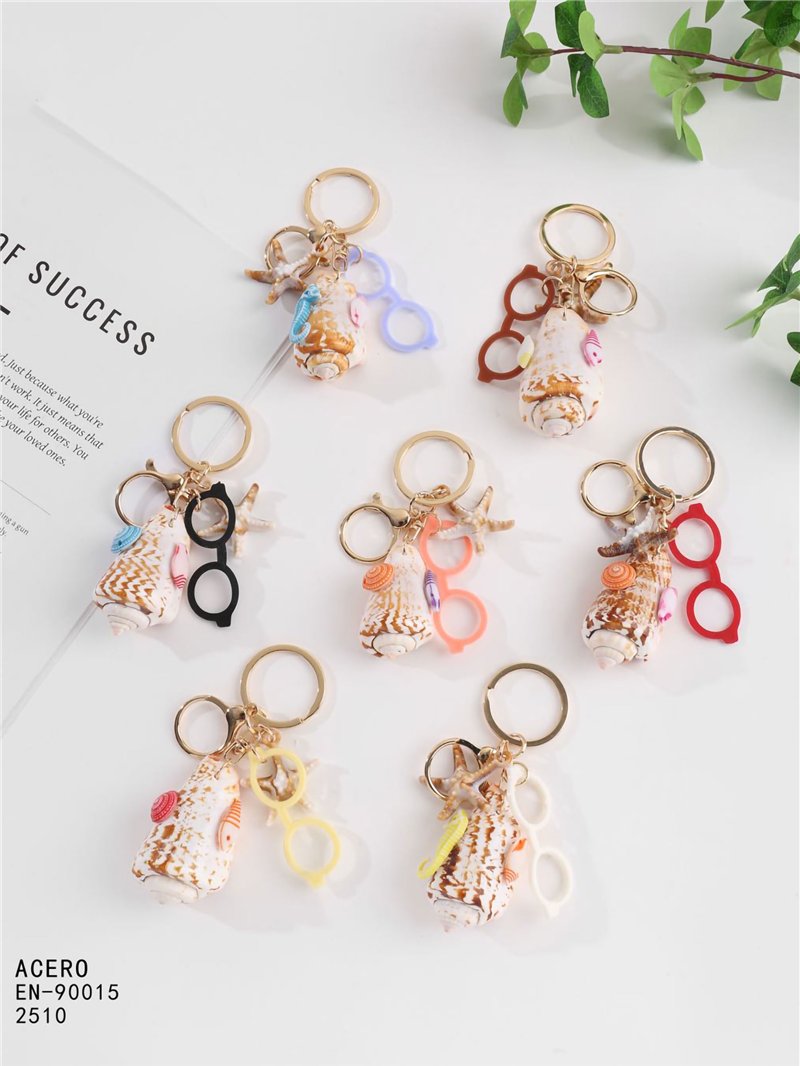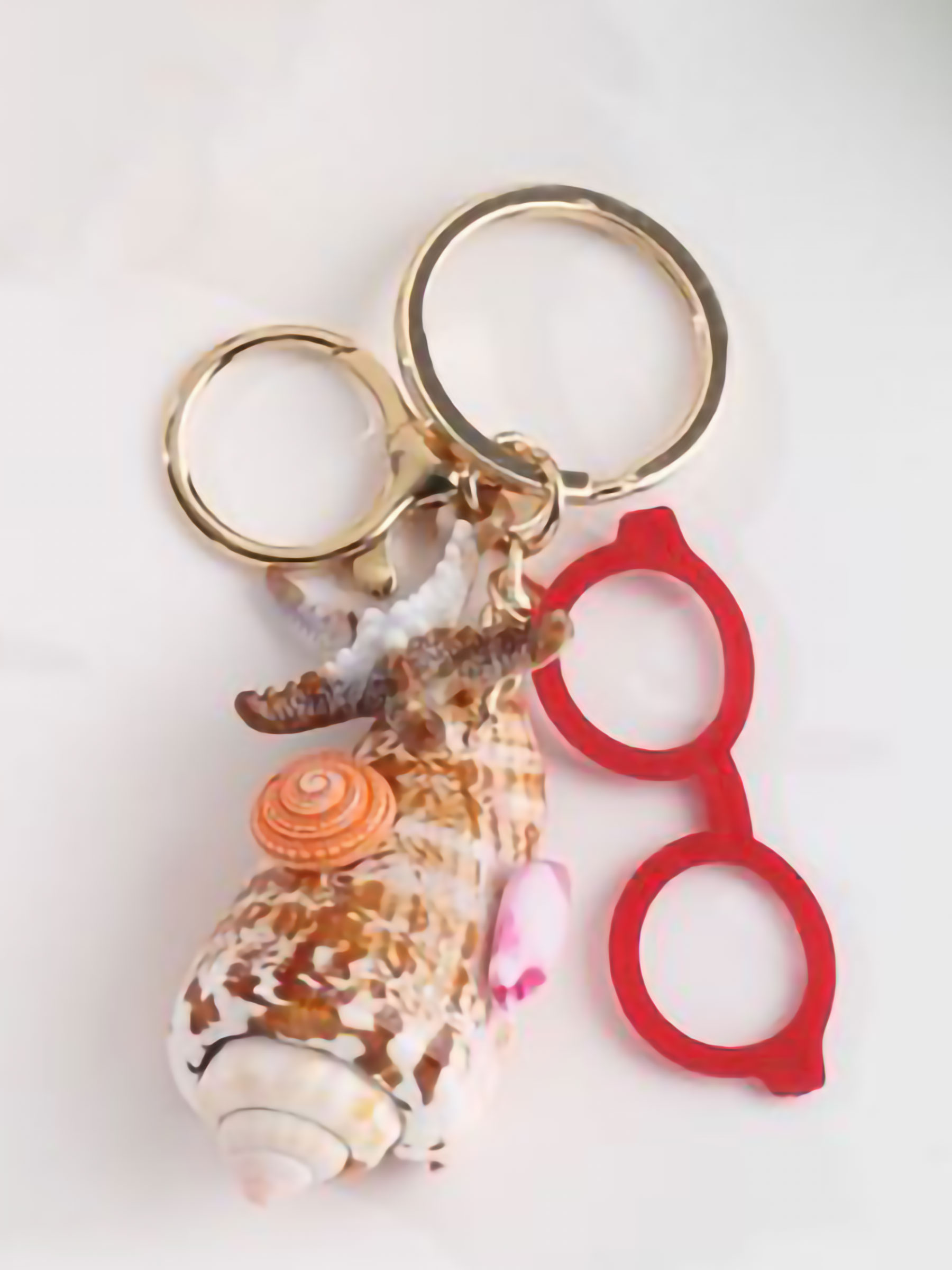 Portachiavi a forma di conchiglia con effetto naturale e occhiali da sole