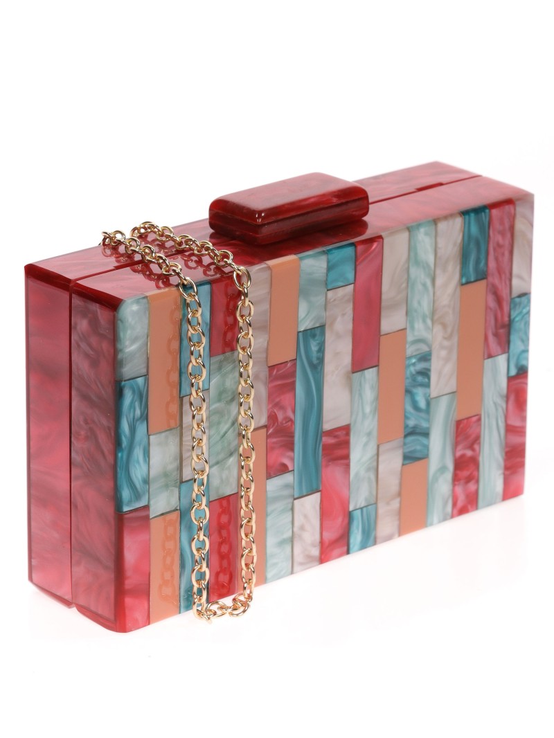 Dettagli di AD-61016 MULTI-ROSSO clutch da festa a righe madreperla