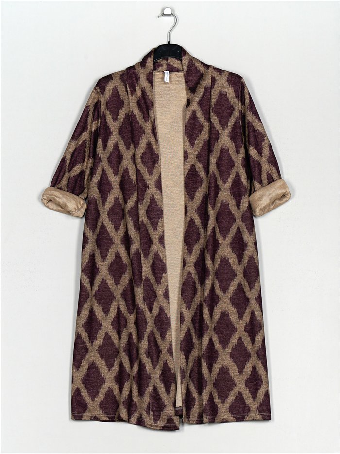 Dettagli della giacca lunga stampata T1103-2381