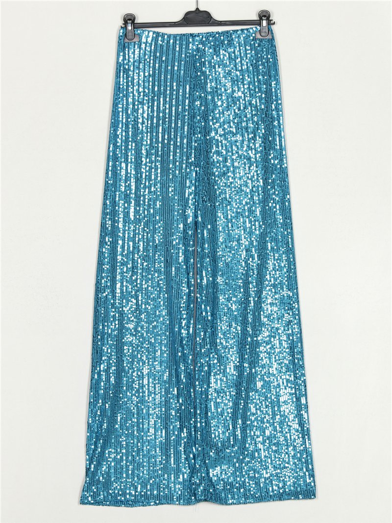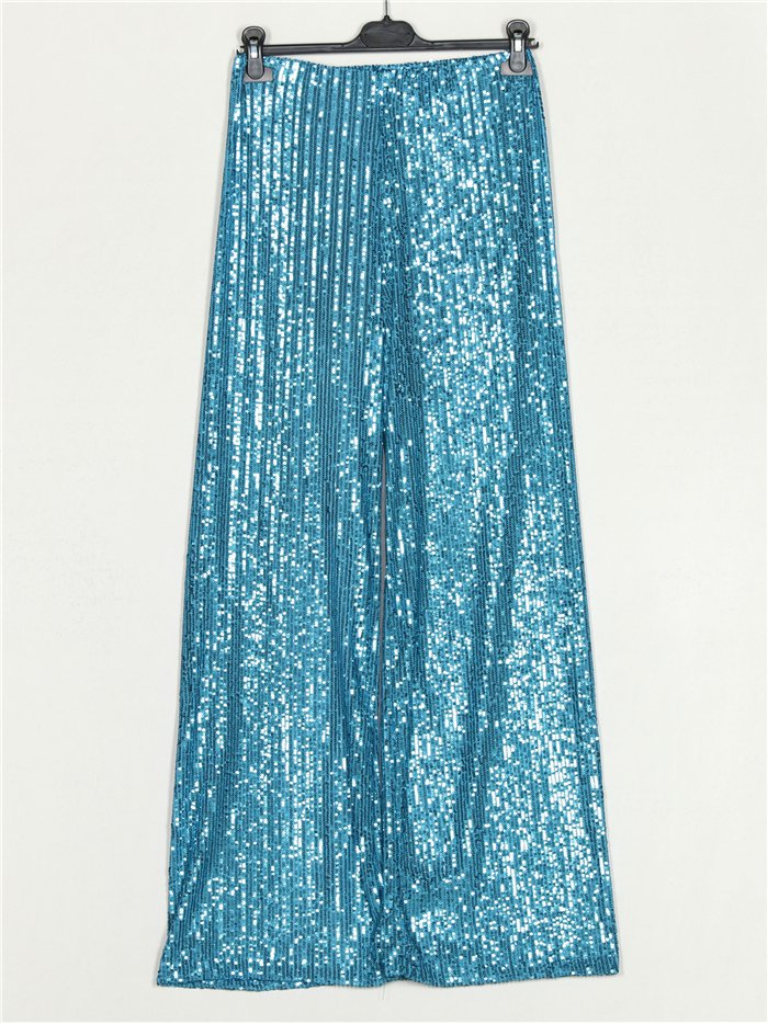 Pantaloni da festa con fodera. Dettaglio paillettes. Vita alta. Vita elastica.