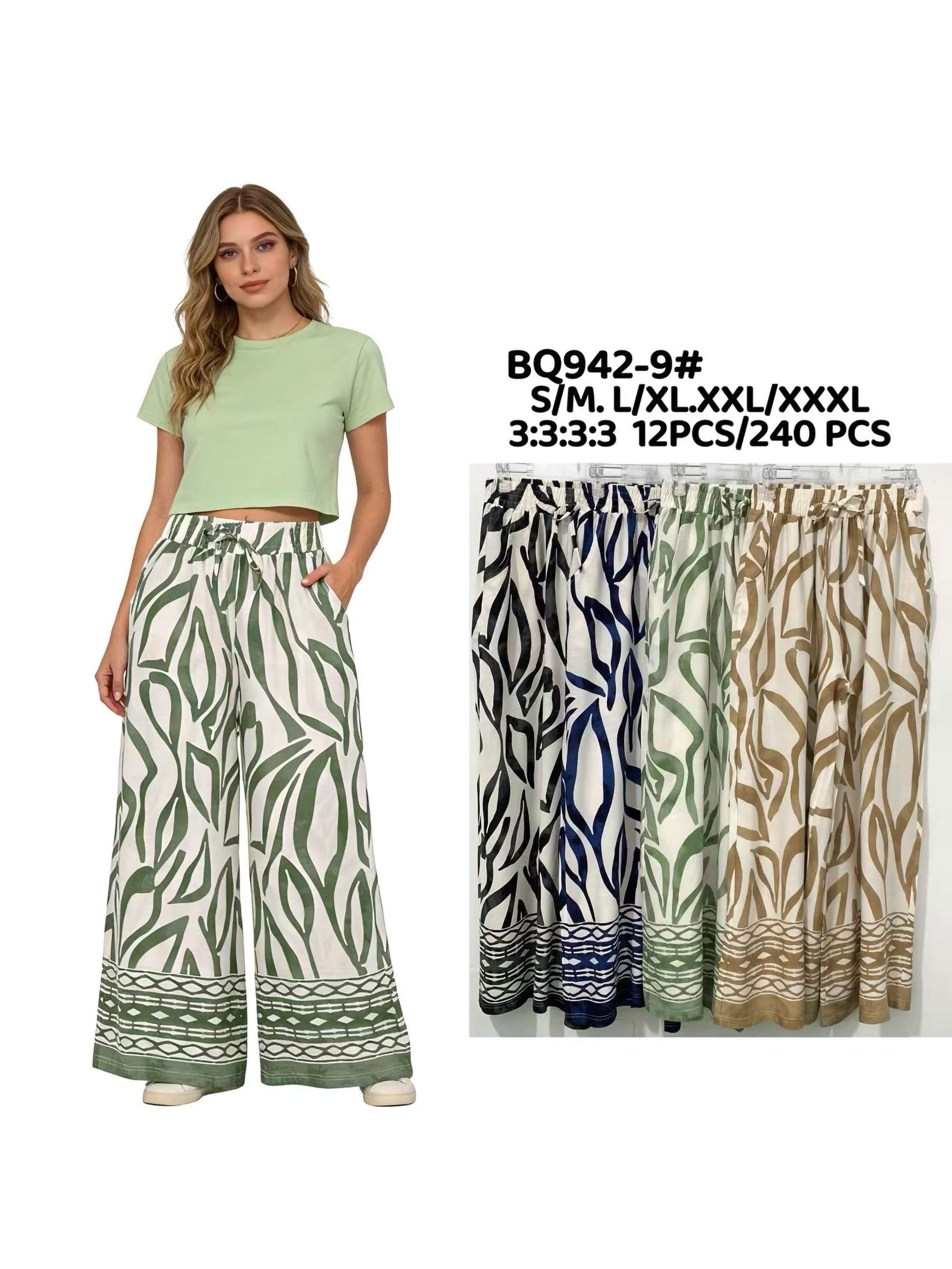 pantaloni palazzo con stampa a foglie