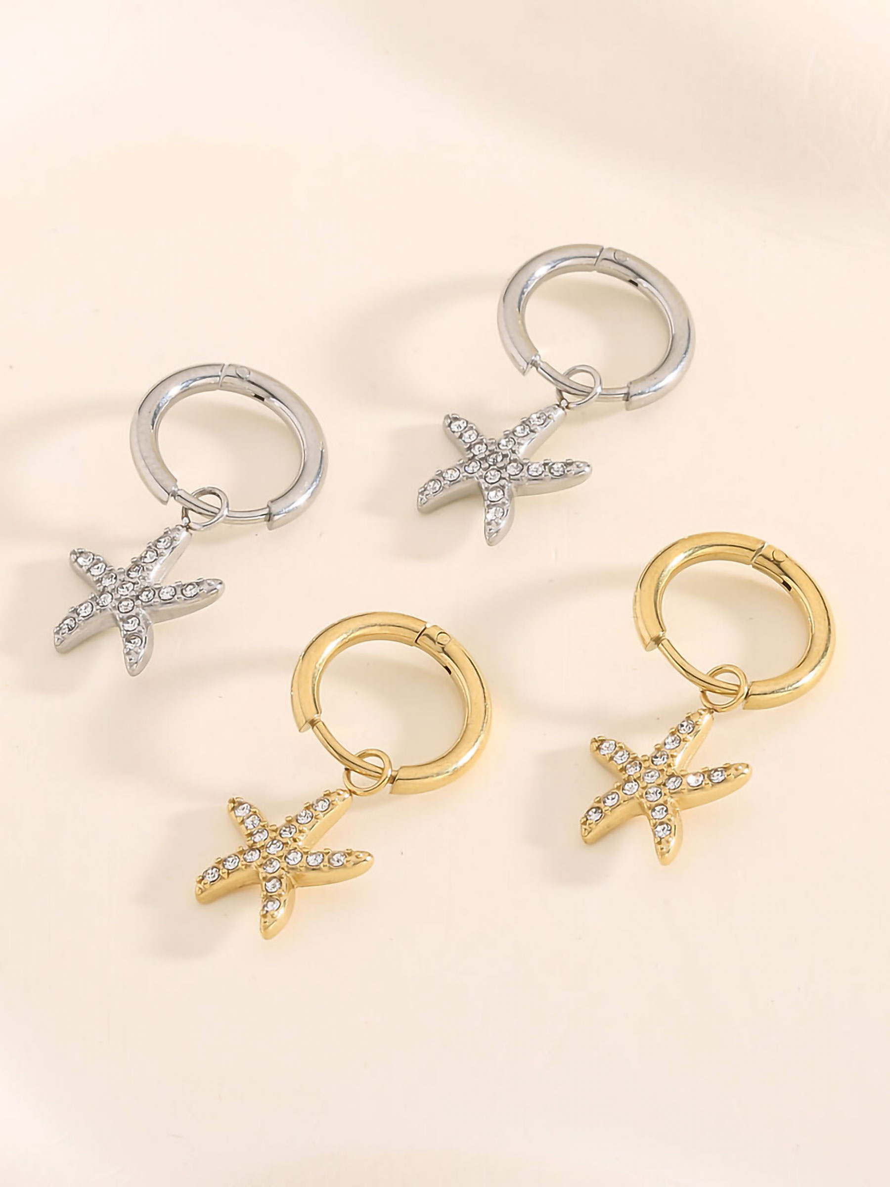 Dettagli degli orecchini a cerchio con pendente a forma di stella marina con zirconi - acciaio inossidabile BS-TG343-TG344