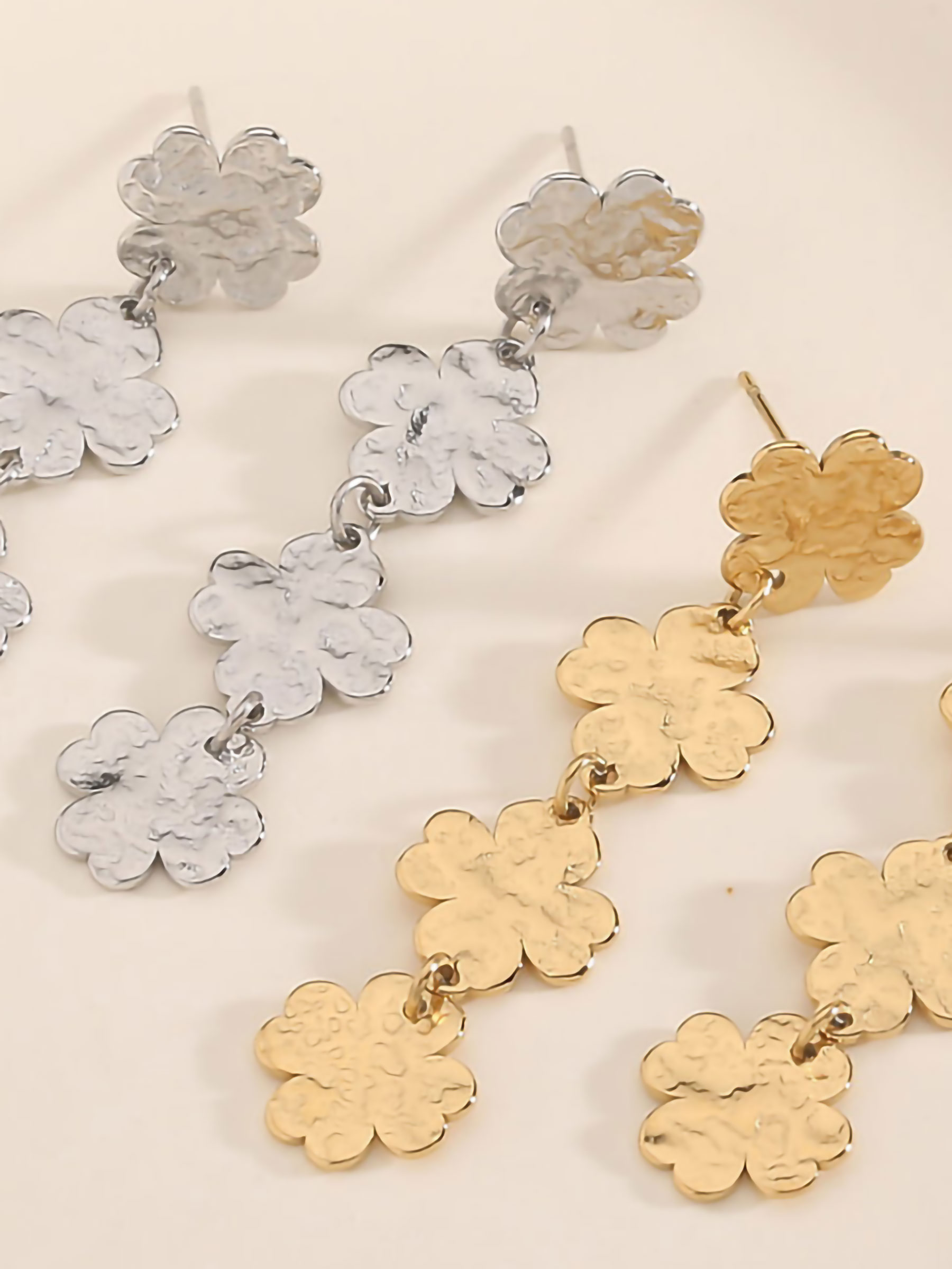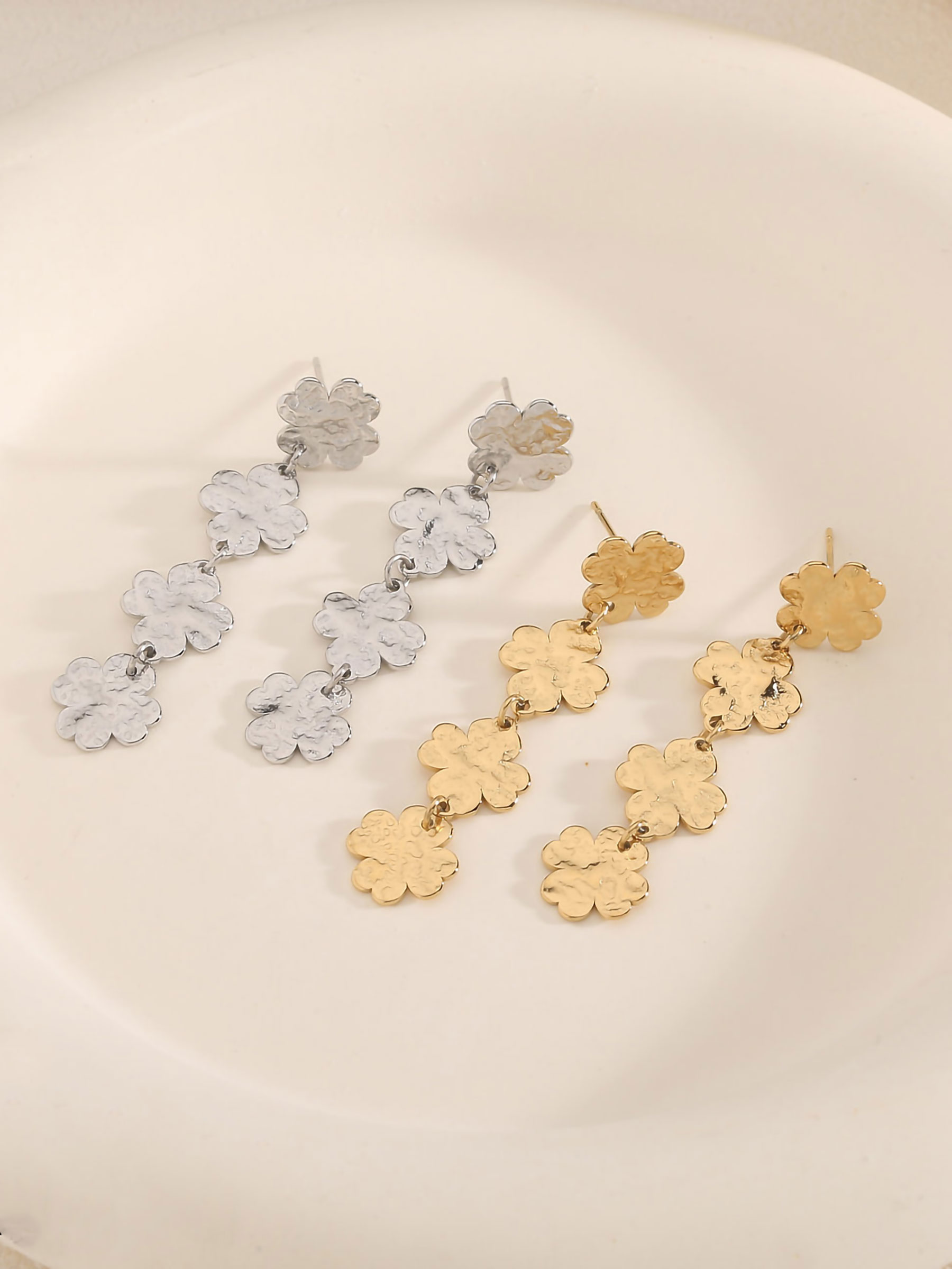 Dettagli degli orecchini lunghi trifoglio martellato BS-QK2972-QK2973