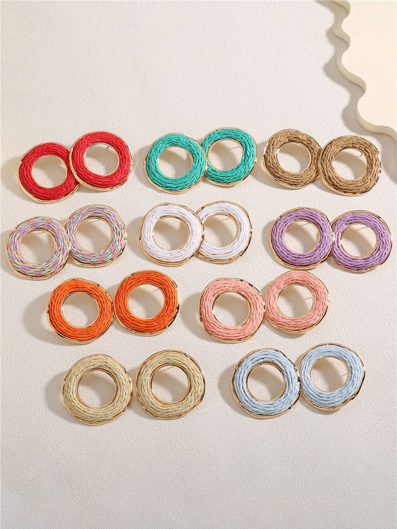 Orecchini a cerchio rotondi in rafia con finiture dorate