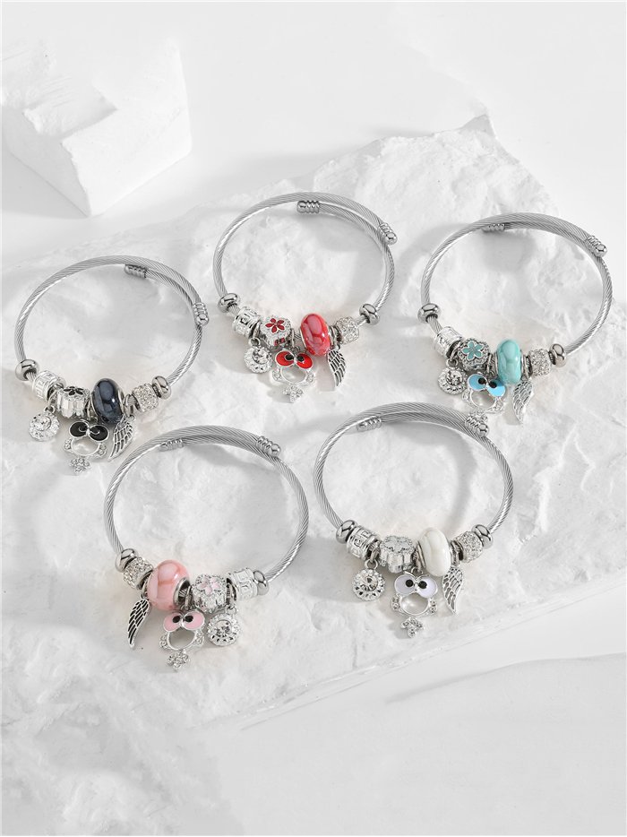 Dettagli del bracciale in acciaio inossidabile con ciondolo gufo e zirconi BS-XG10009-ARGENTO