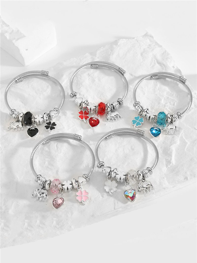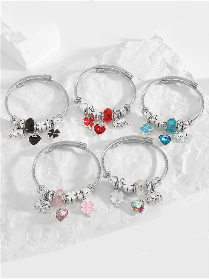 Dettagli del bracciale in acciaio inossidabile con charm a forma di cuore con zirconi BS-XG10006-ARGENTO