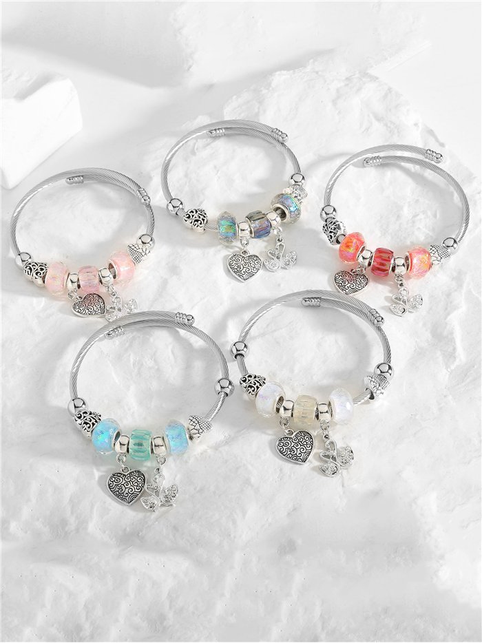 Dettagli del bracciale in acciaio inossidabile con charm a forma di cuore e cigni con zirconi BS-LQ20135-ARGENTO