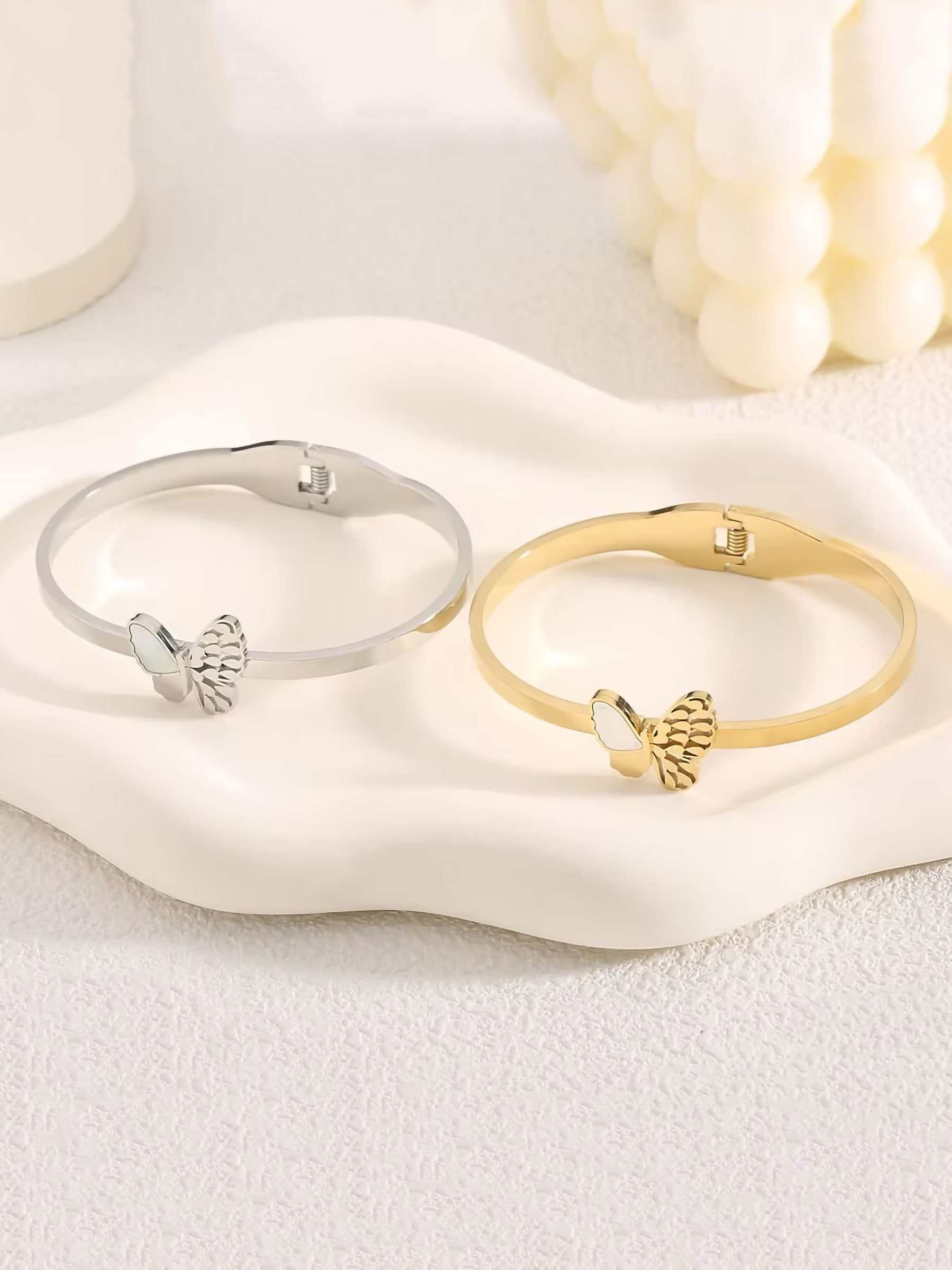 Bracciale rigido farfalla madreperla - Acciaio inossidabile