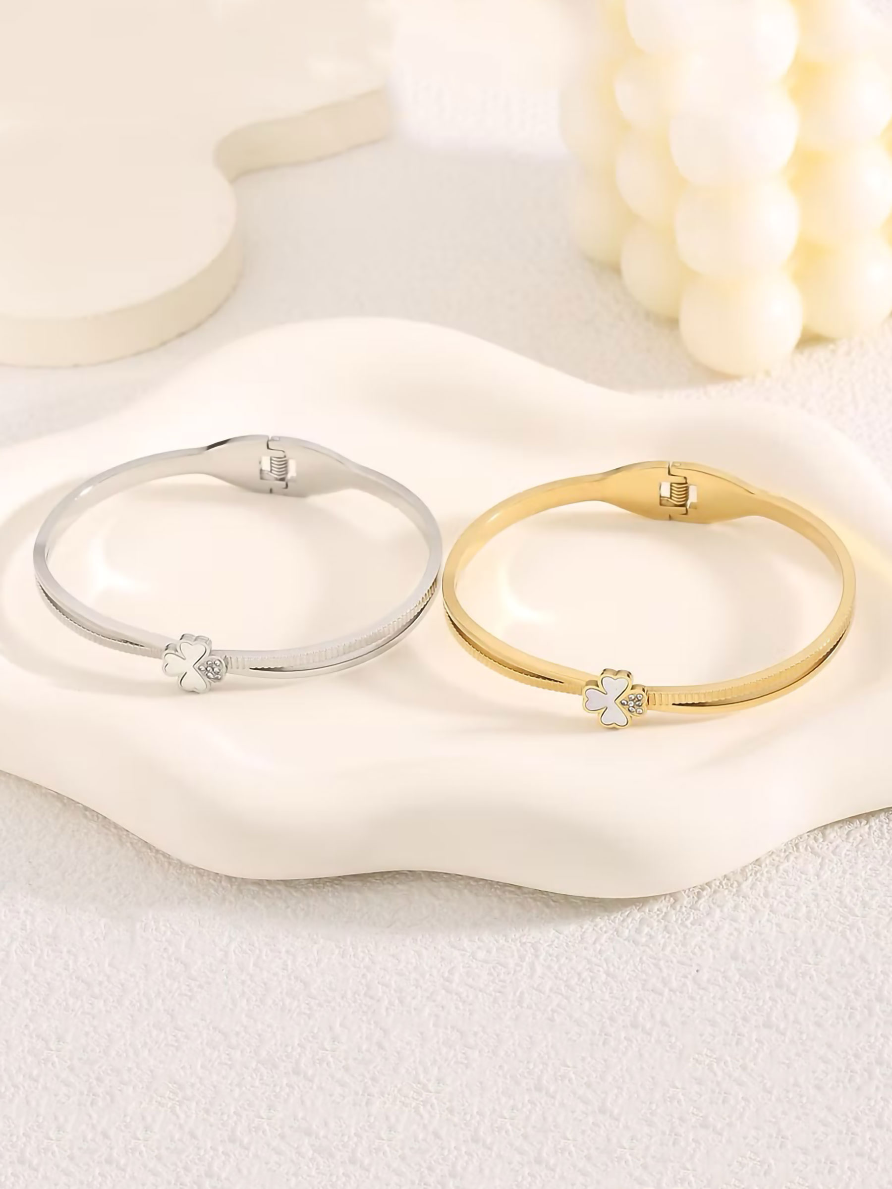Dettagli del bracciale rigido trifoglio in madreperla con zirconi - acciaio inossidabile BS-TG075-TG076