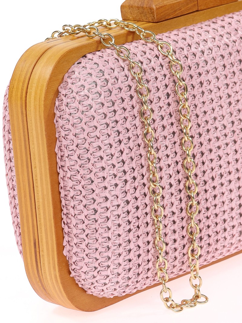 Dettagli di AD-22265 ROSA borsa clutch da festa in paglia e legno