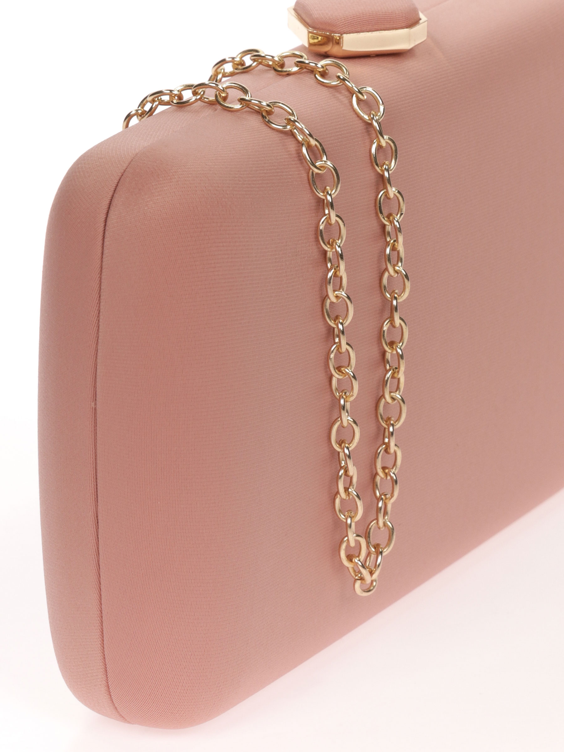 Borsa da festa. Materiale raso. Tracolla a catena. Fodera senza tasca interna. Chiusura in metallo dorato.