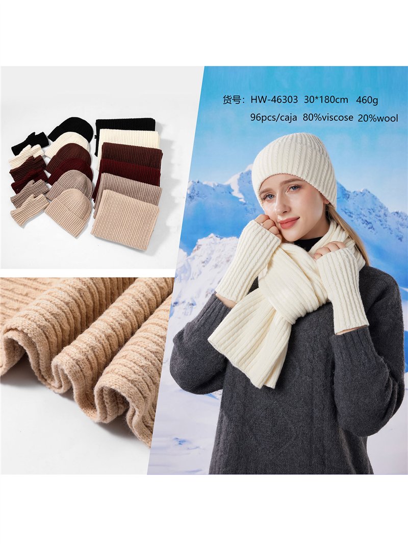 Dettagli del set sciarpa + berretto + guanti HY-HW-46303