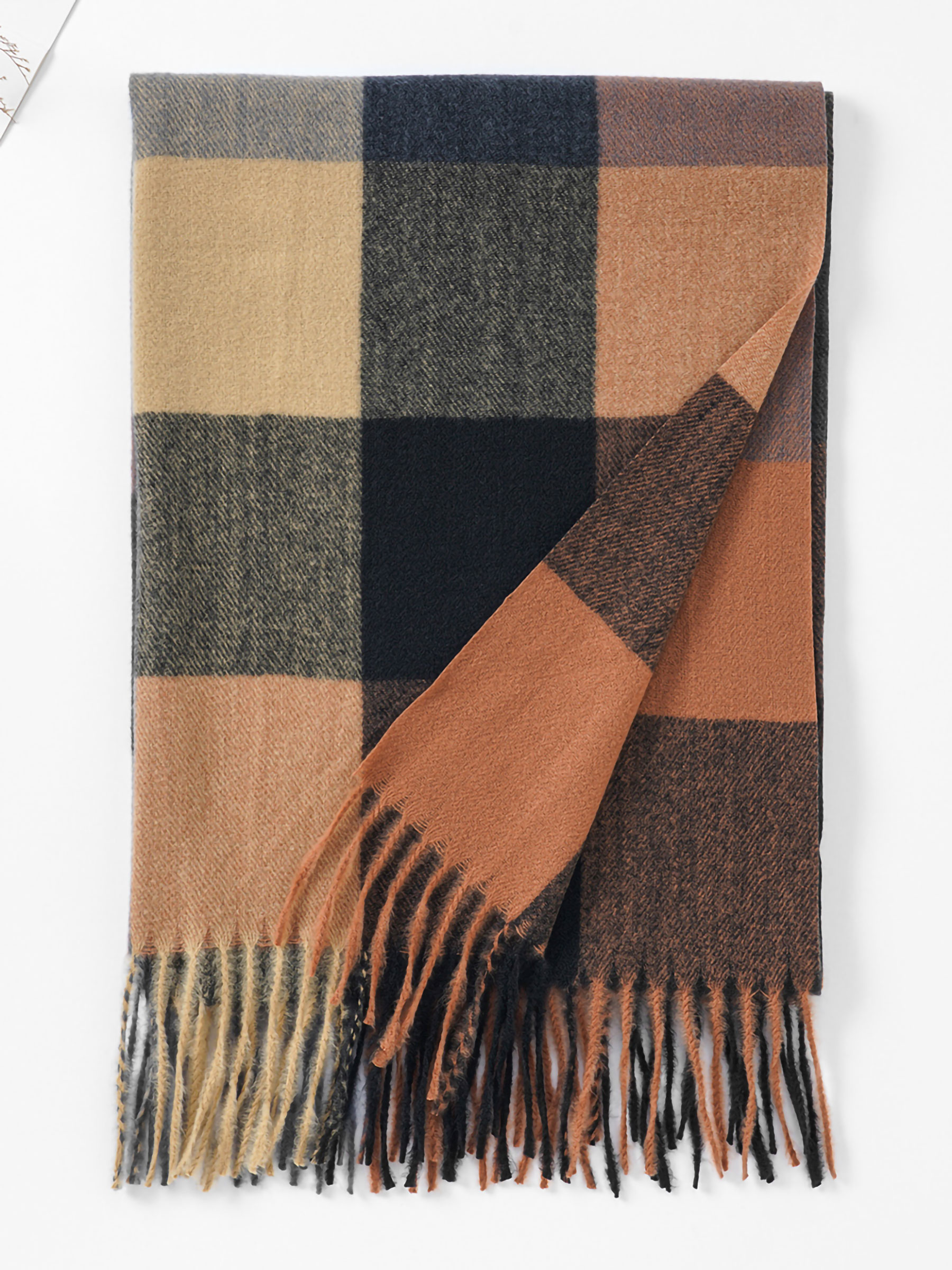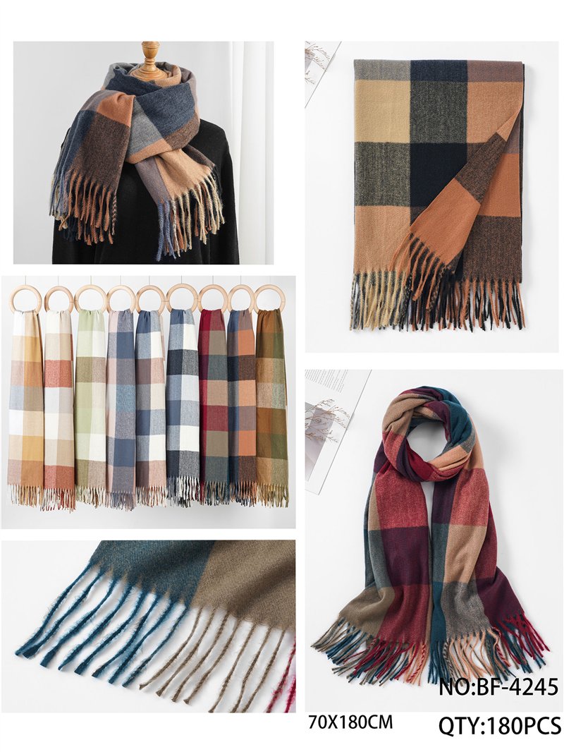 Detalles de bufanda cuadros con flecos BF-BF-4245