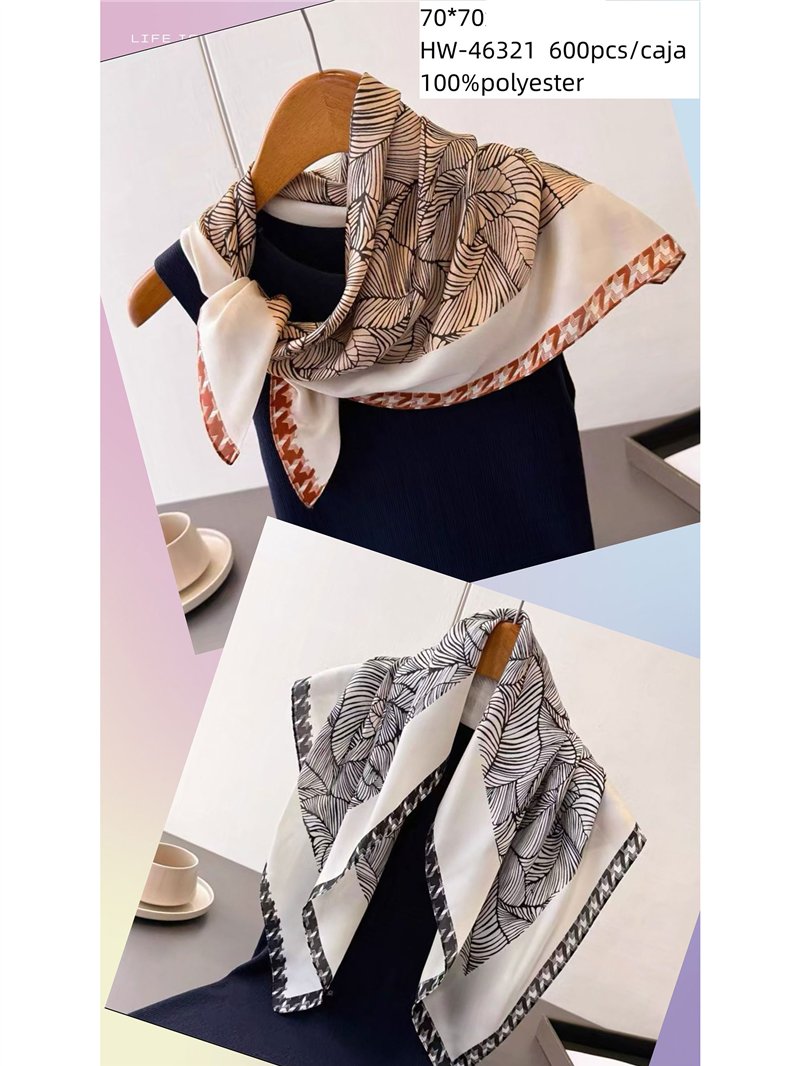 Detalles de pañuelo pequeño efecto seda cuadrado hojas HY-HW-46321
