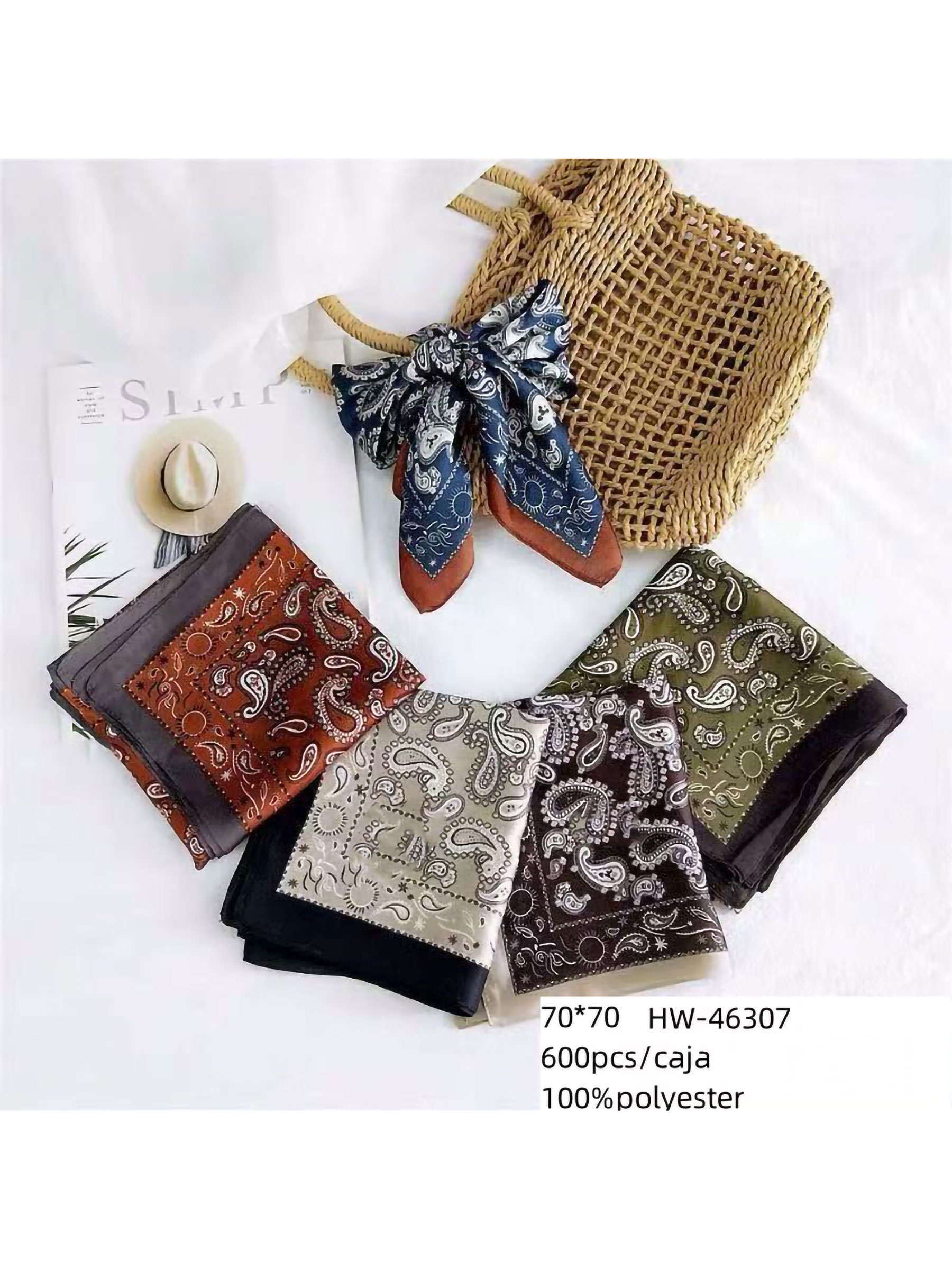 sciarpa quadrata in stile bandana effetto seta paisley