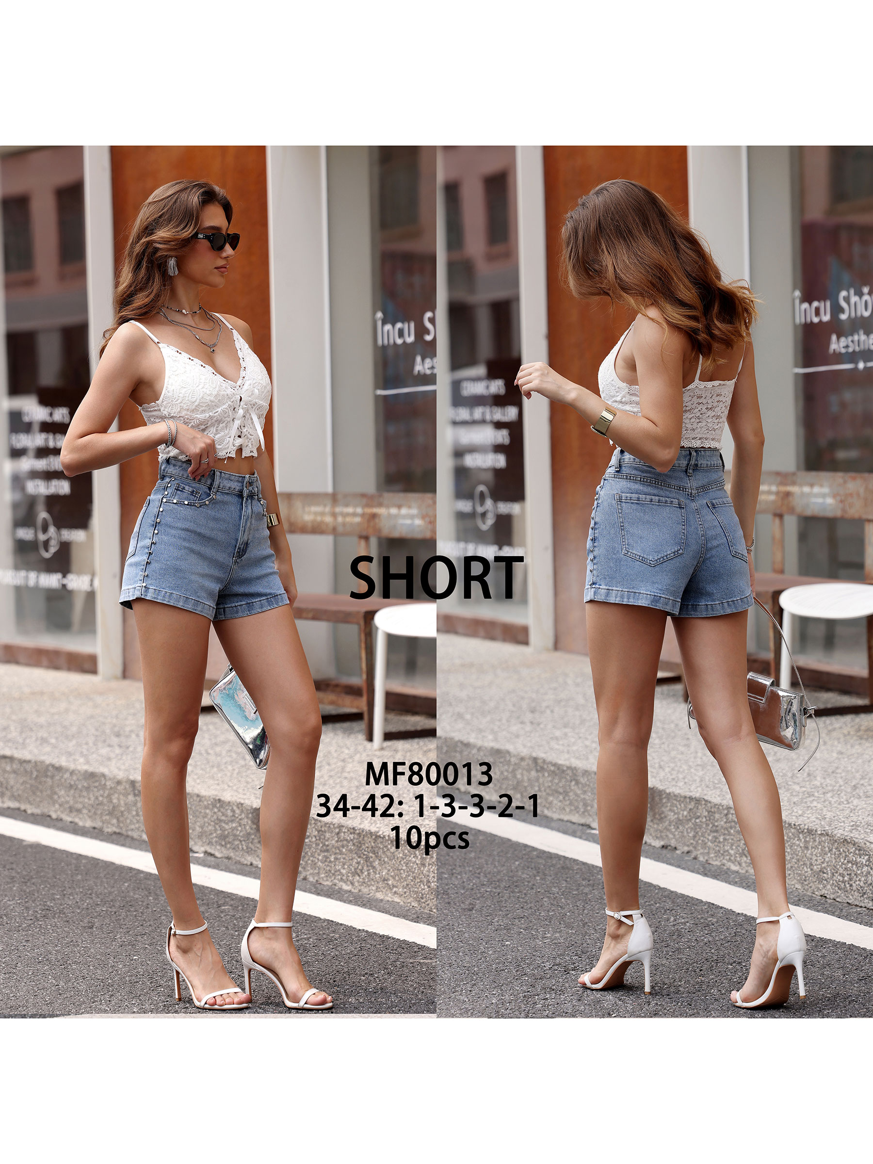 Pantaloncini di jeans con borchie decorative