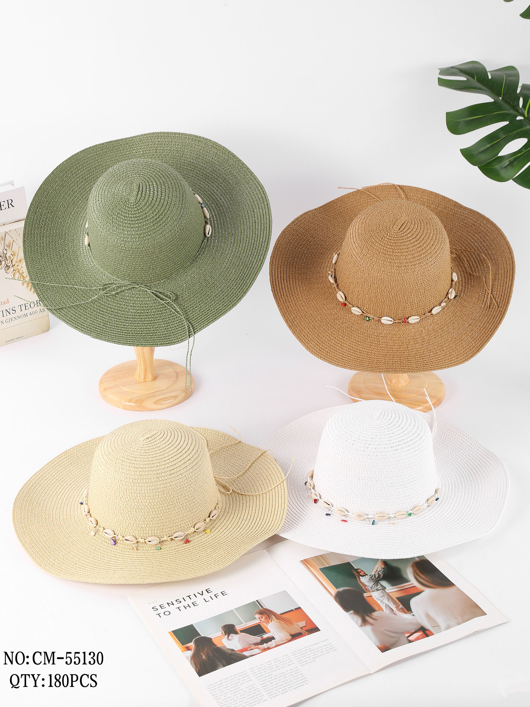 Cappello in rafia con conchiglie e perline