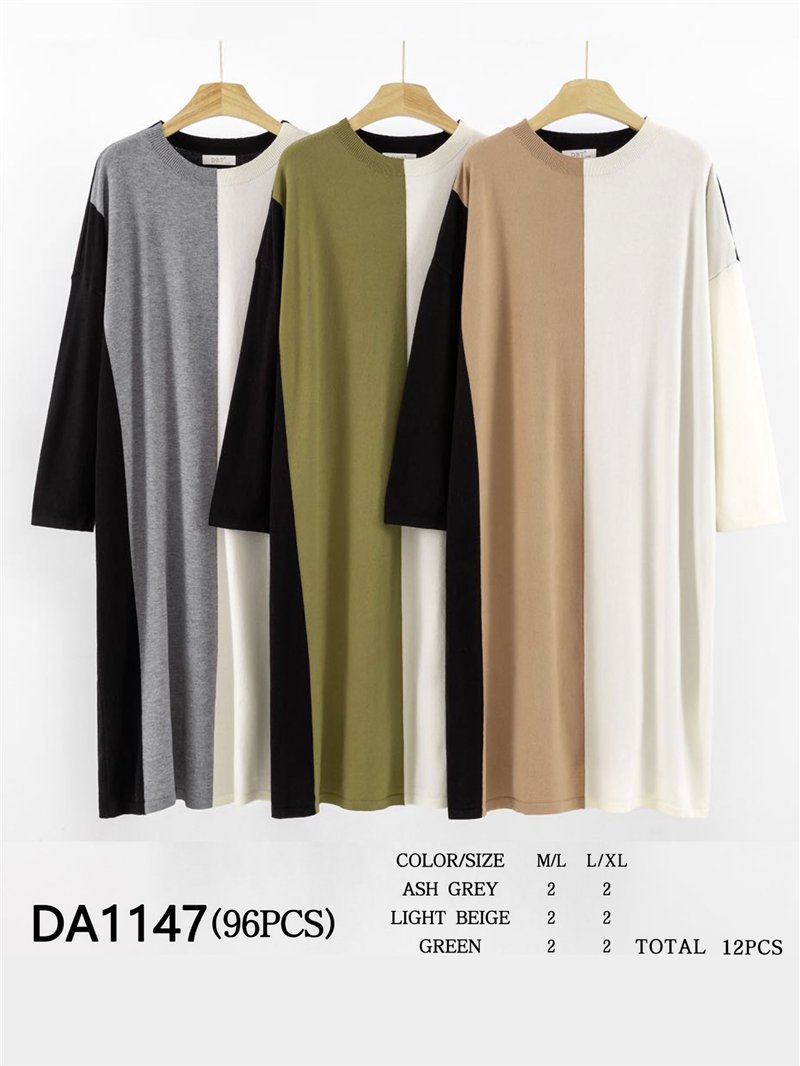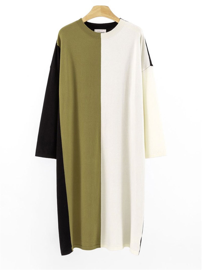 Vestido amplio de punto. Tacto suave. Cuello redondo. Manga larga.