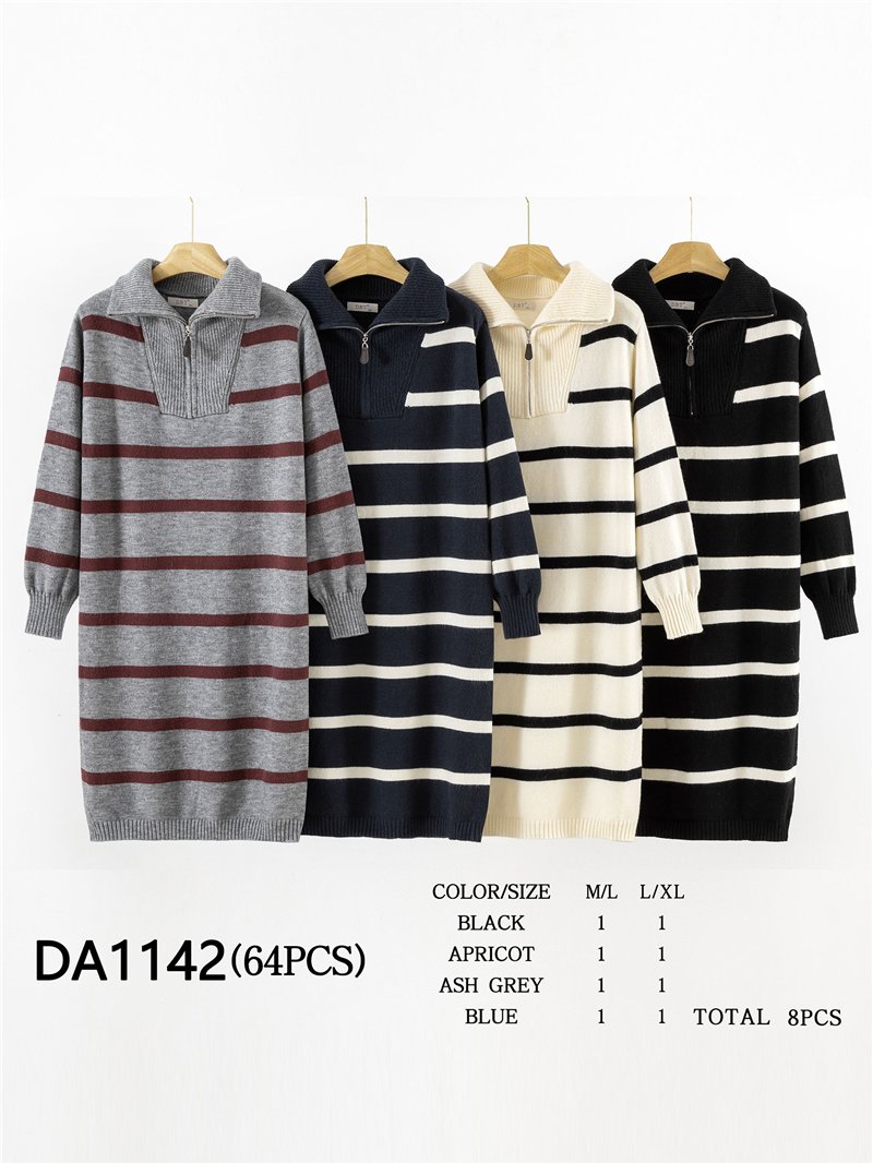 Dettagli dell'abito a righe con collo a zip DB-DA1142