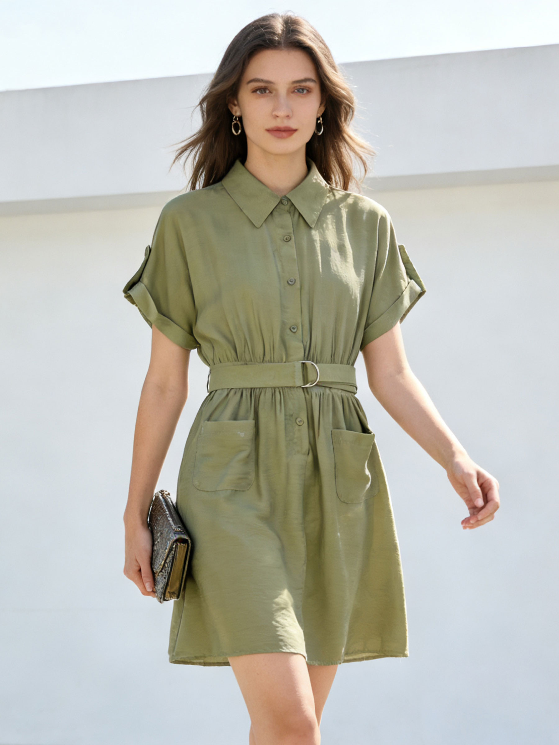 Abito chemisier con cintura e tasche