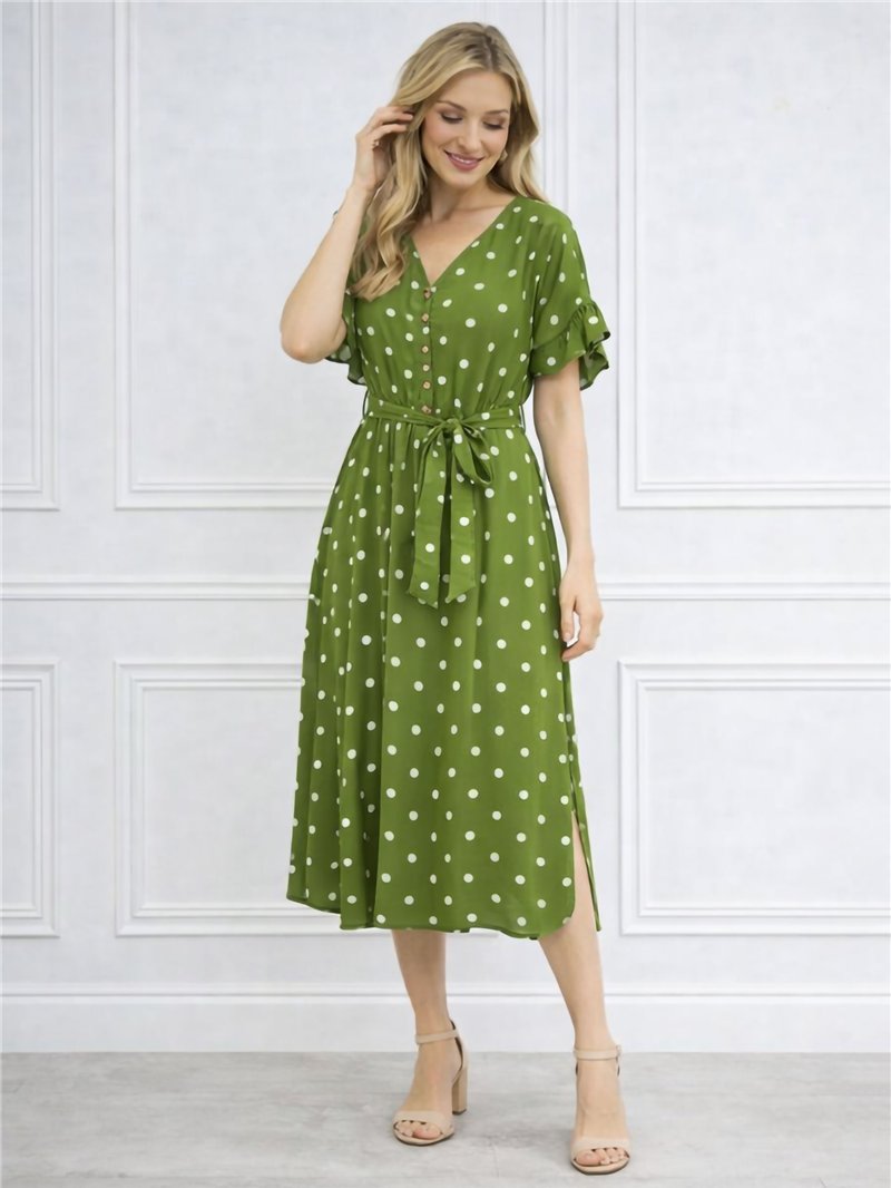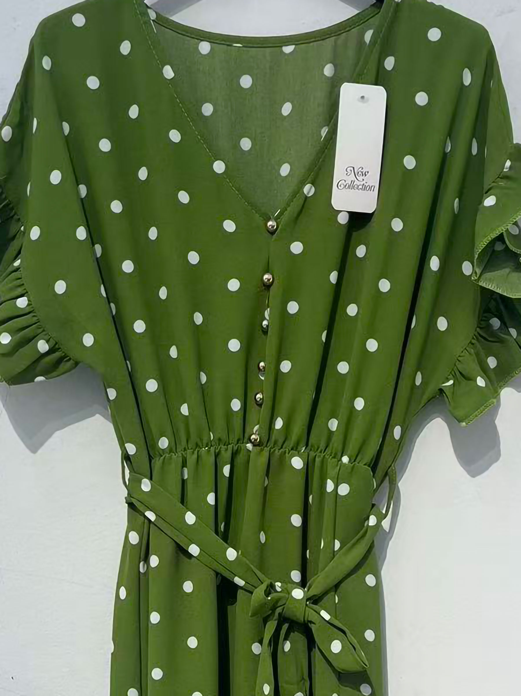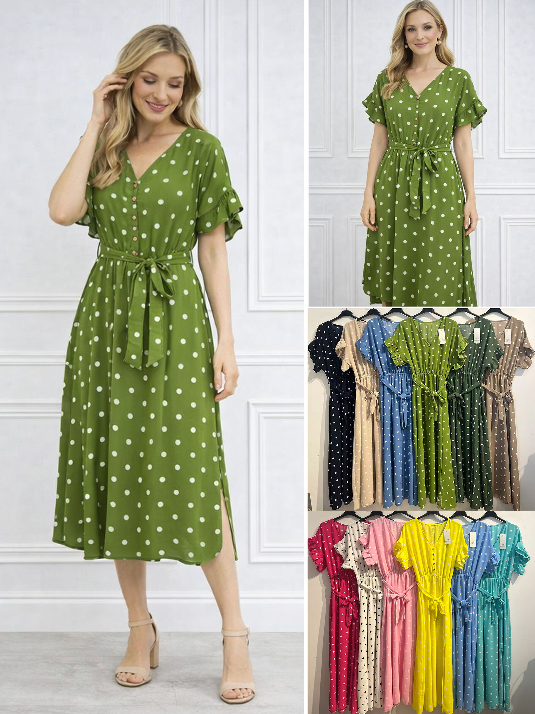 Abito midi a pois con maniche a volant da annodare Abito midi a pois con maniche a volant da annodare Abito midi a pois con maniche a volant da annodare