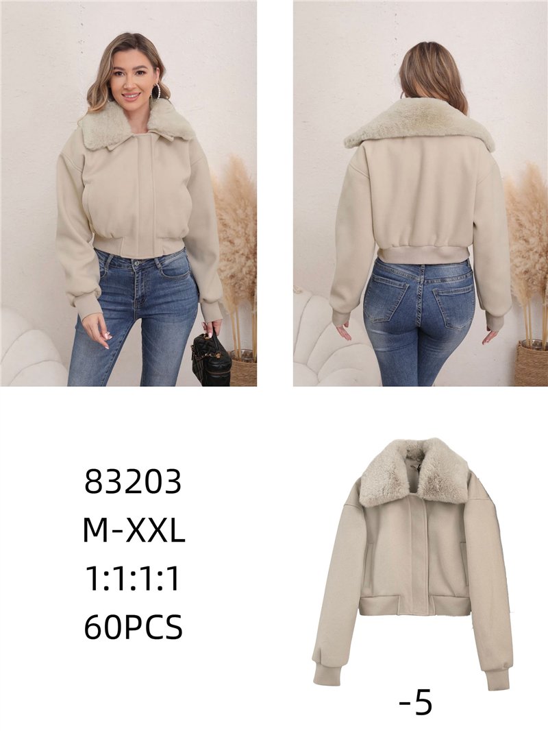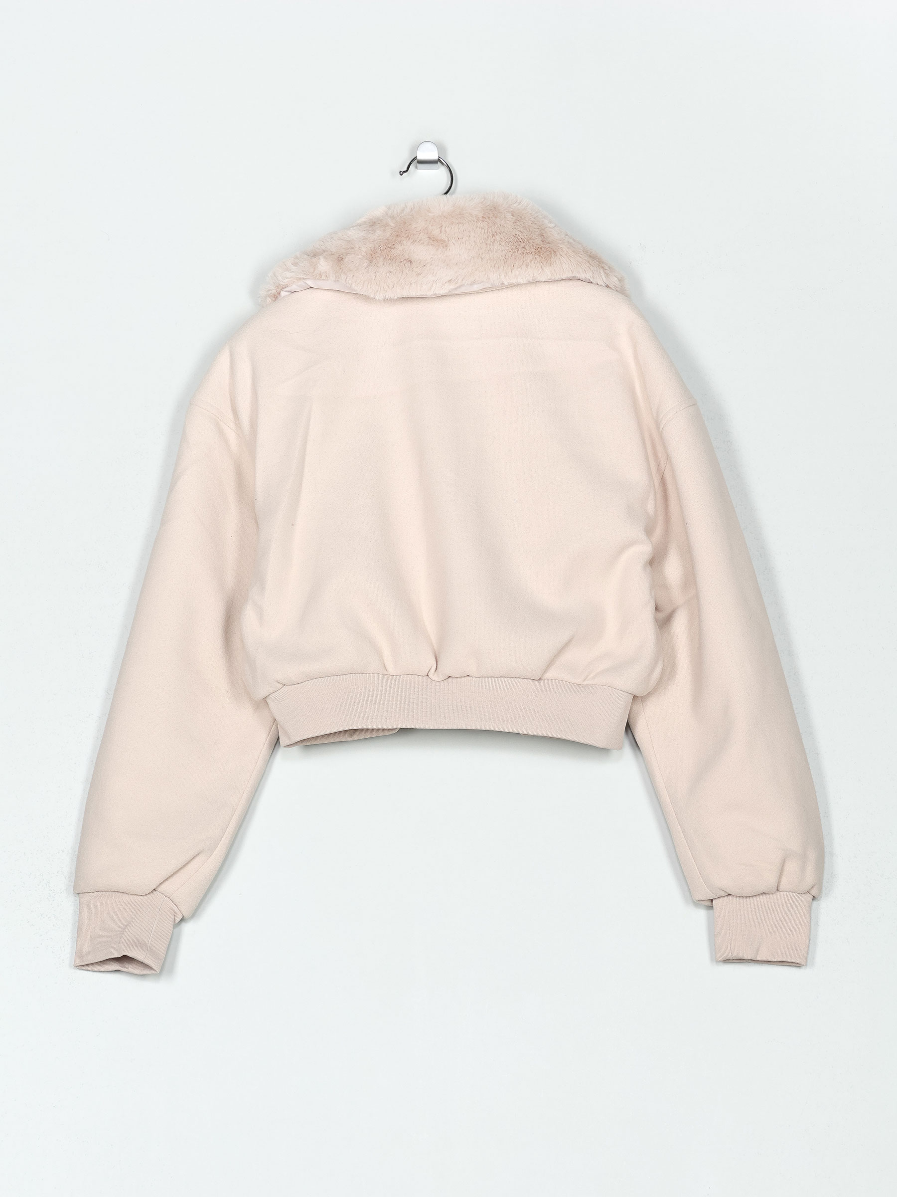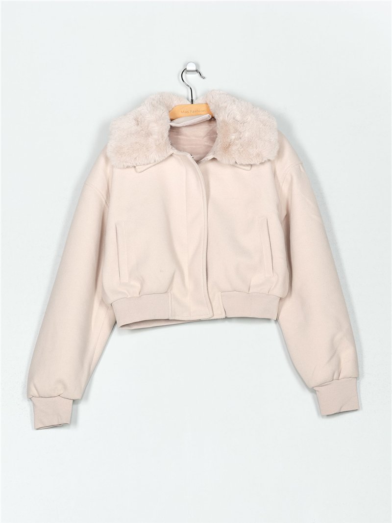 Detalhes de casaco bomber de pele com gola de pelo MF-AF-83203-5-BEIGE