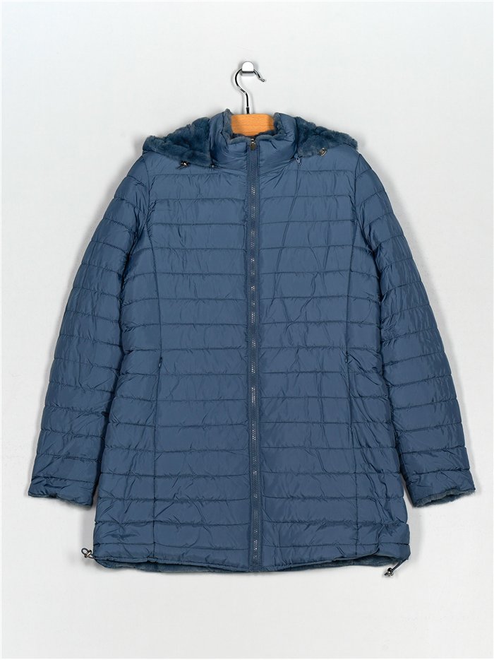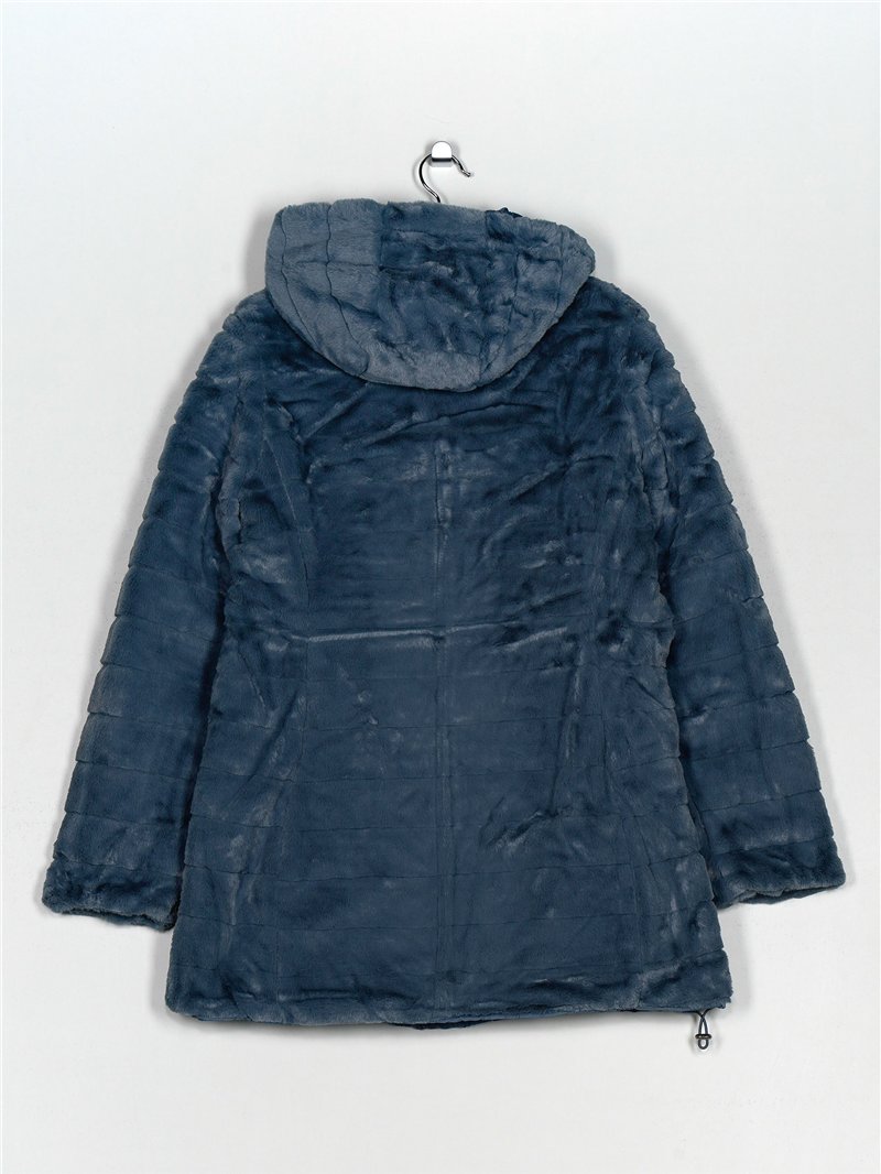 Detalhes do anorak amplo reversível com capuz forrado de fleece MF-AF-83027-11-HAZE-BLUE