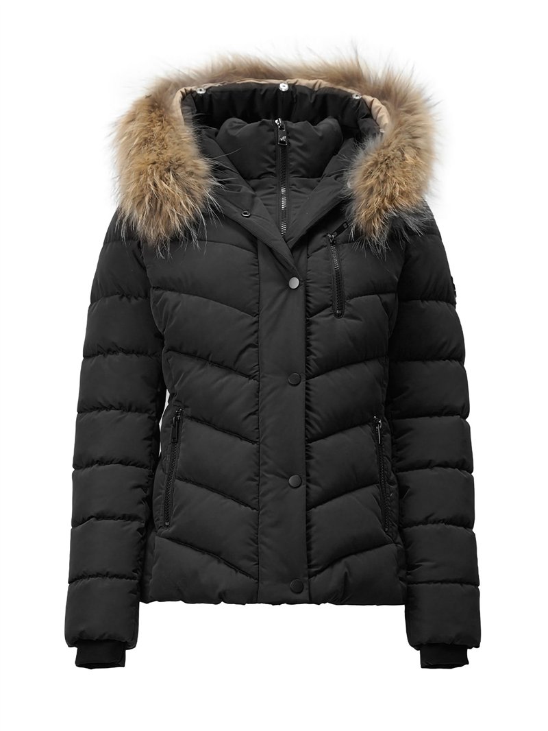 Detalhes do anorak curto com capuz de pelo MF-JHD-850387AF