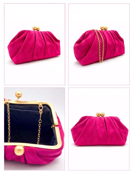 Antelina Clutch festa camurça fúcsia AD-41334 FUCSIA Bolsa de festa. Efeito camurça. Alça de ombro em corrente. Forro sem bolso interno. Fecho metálico dourado.Largura x Altura x Profundidade: 18 X 13 X 4 cm. Ver preço